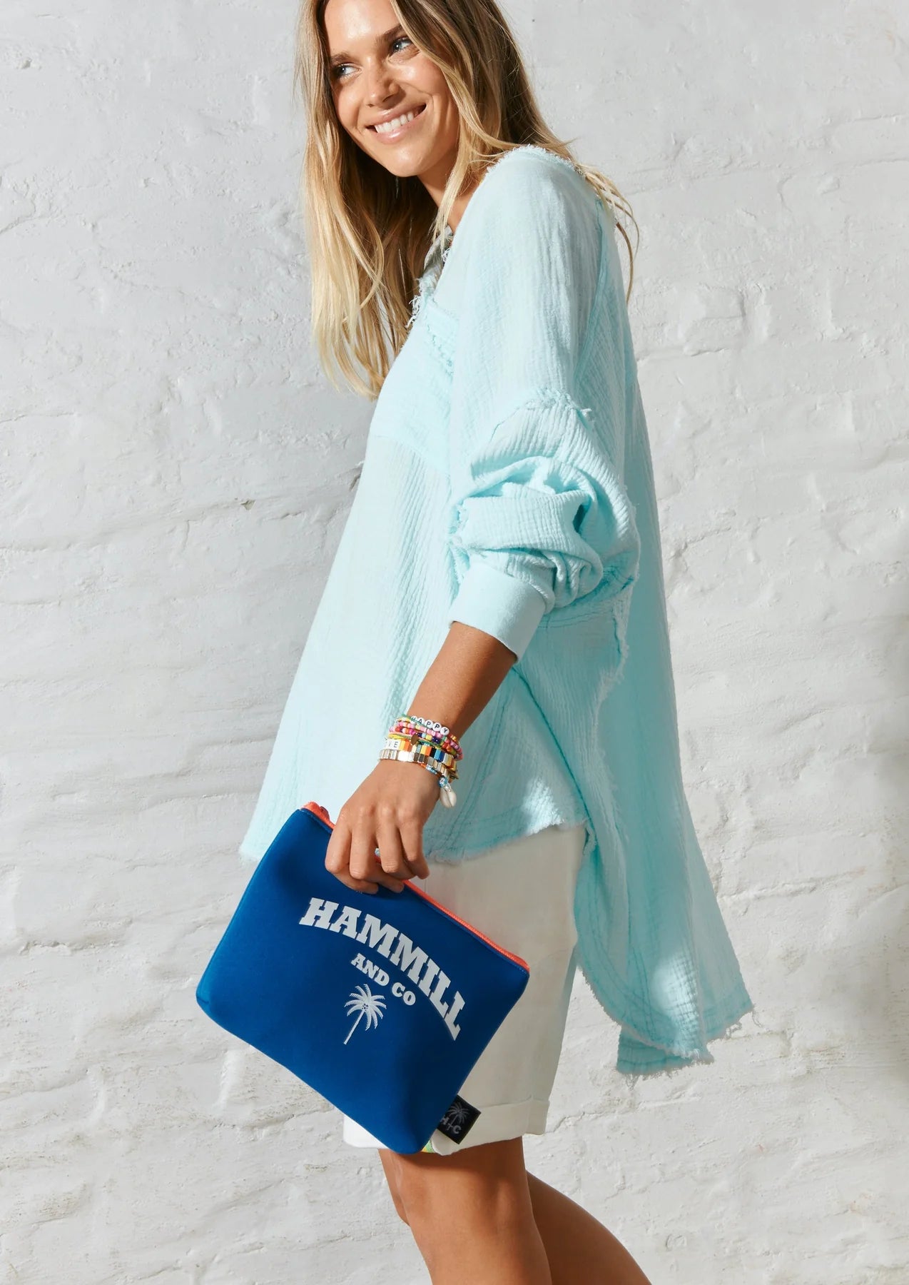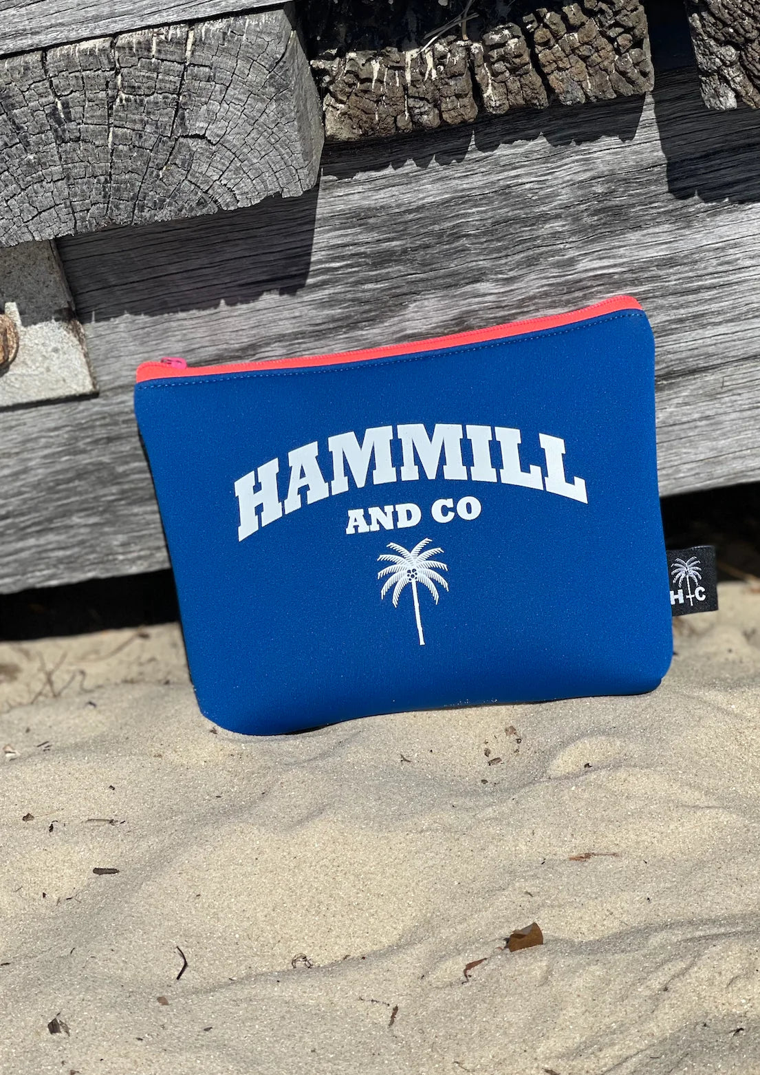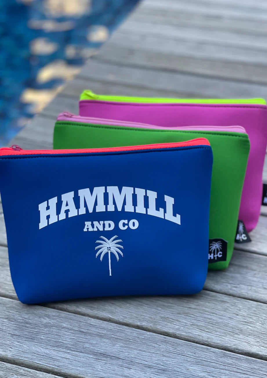 The material is a soft 100% neoprene wetsuit fabric with a white Hammill and Co print.