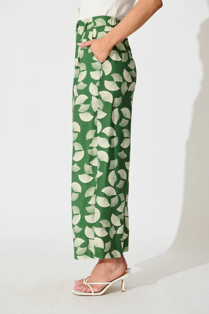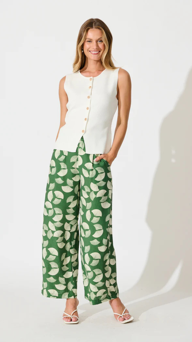 The Fan Pants are cut in a wide-leg silhouette that drapes beautifully with every step. Crafted from a soft, breathable fabric, they feature a bold fan motif that brings a touch of artistry to everyday dressing. The high-rise fit with an elasticated back ensures comfort without compromising on polish — perfect for styling with crisp shirting or relaxed knits.