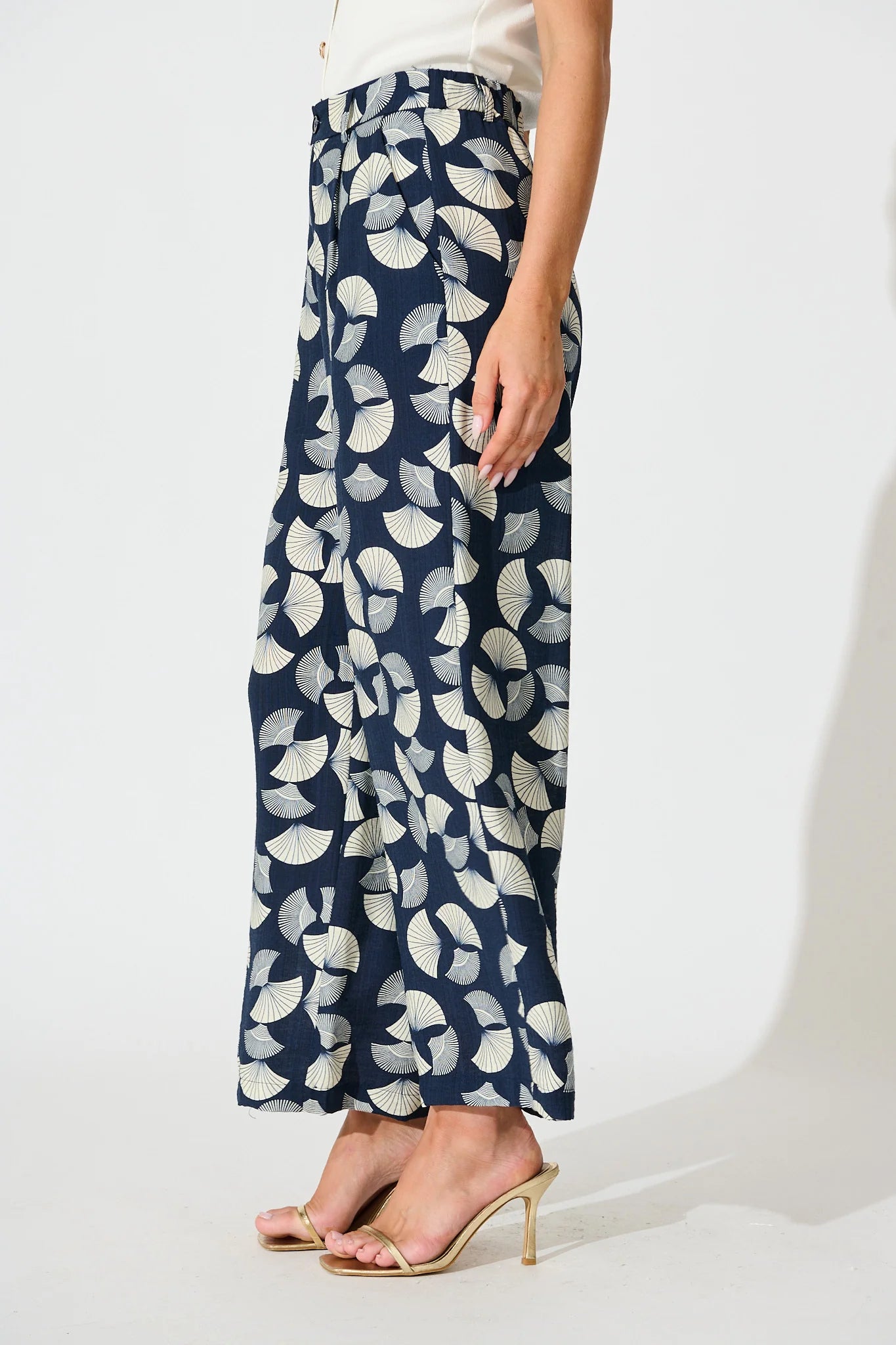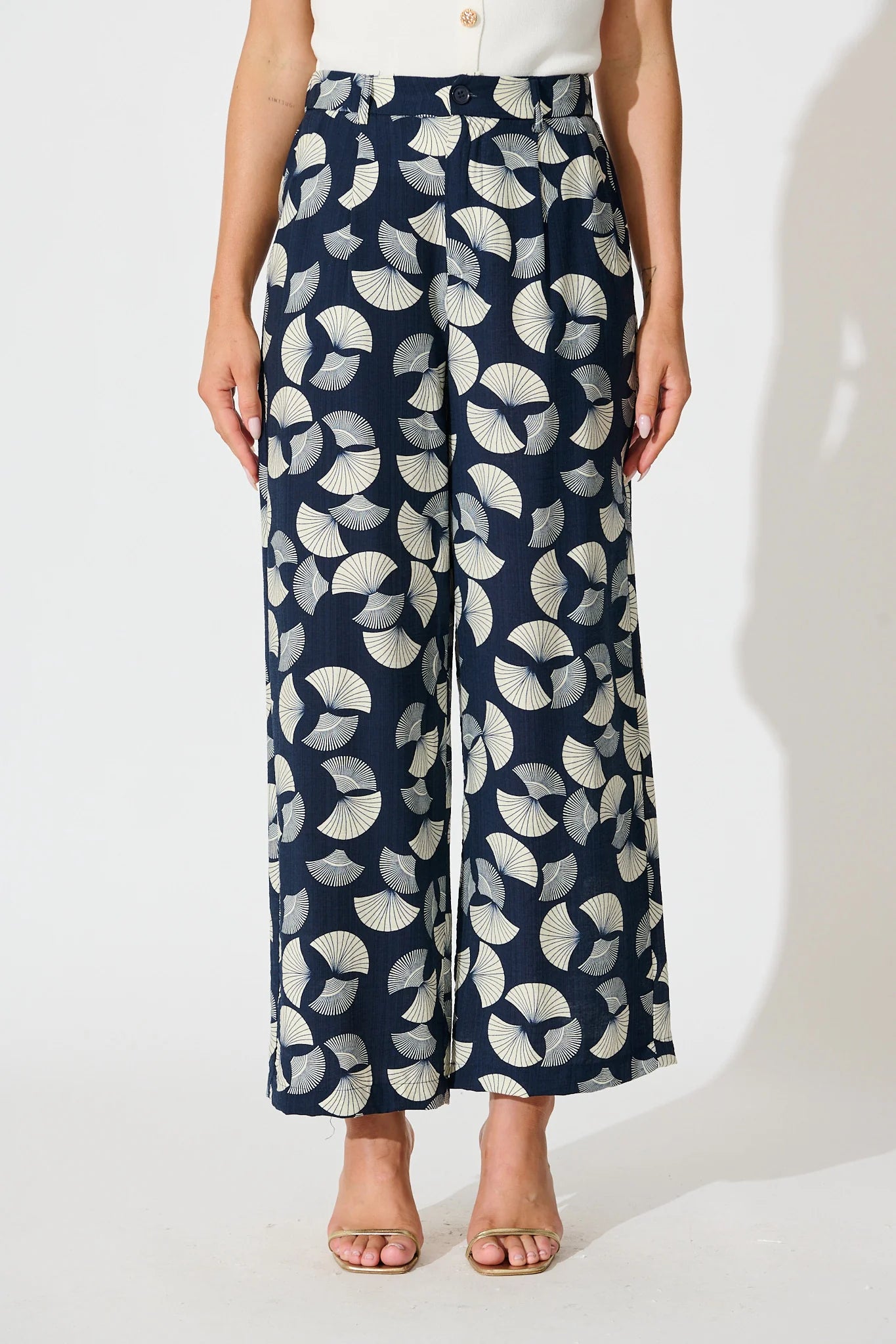 The Fan Pants are cut in a wide-leg silhouette that drapes beautifully with every step. Crafted from a soft, breathable fabric, they feature a bold fan motif that brings a touch of artistry to everyday dressing. The high-rise fit with an elasticated back ensures comfort without compromising on polish — perfect for styling with crisp shirting or relaxed knits.