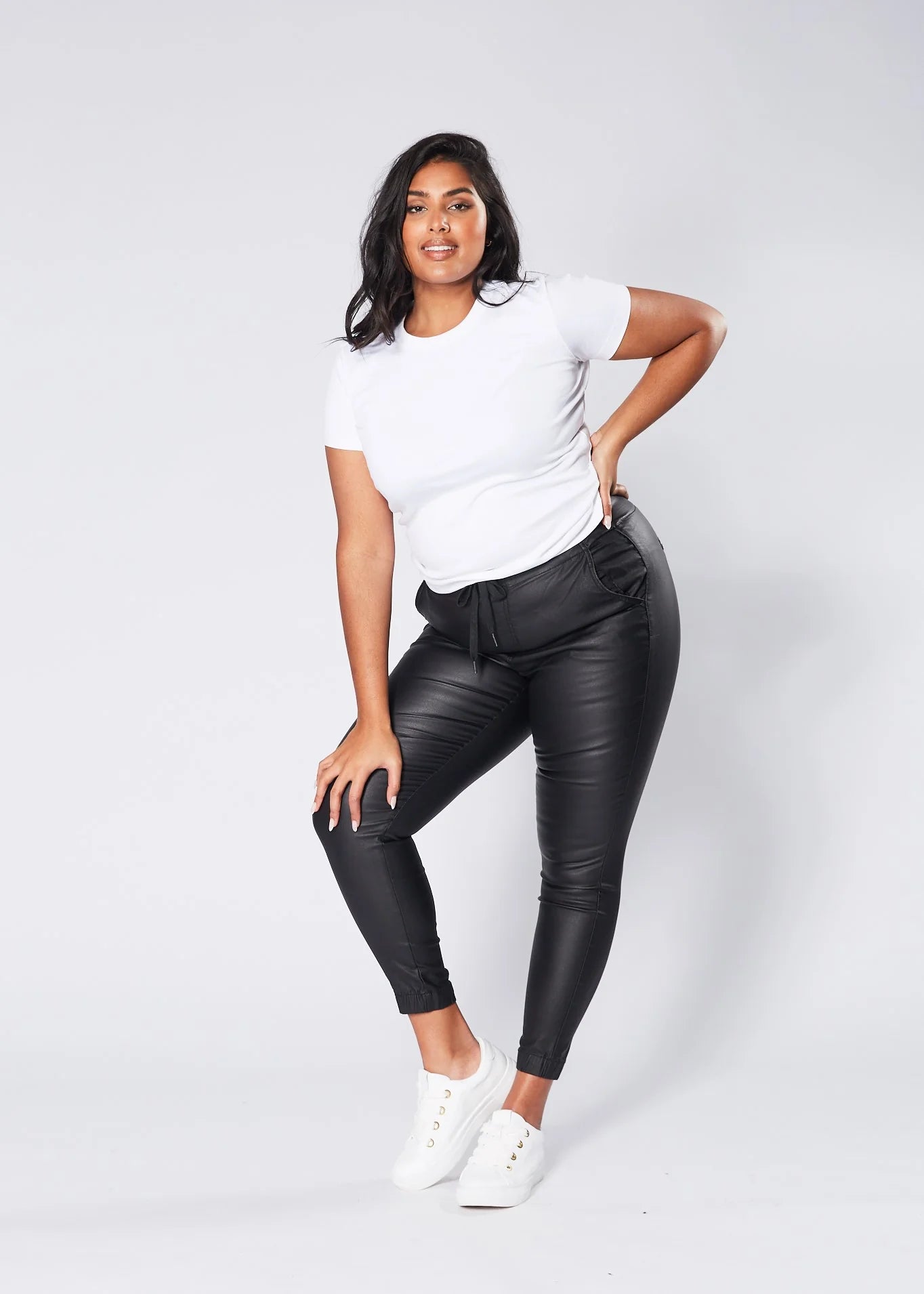 Step out of your comfort zone in our wet-look Hayden joggers! Ours have been crafted with care from an elastane blend fabric and a high-waisted finish. The elastic waistband and drawstring mean you can easily fit these to your body shape.