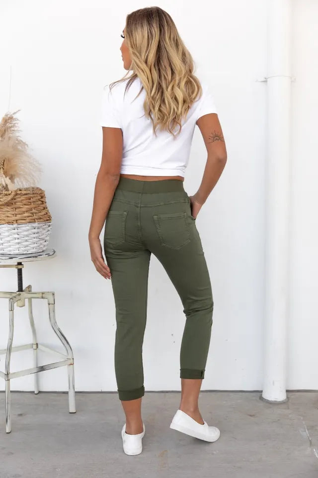 When you want comfort without sacrificing your style, reach for your Rileys. These denim joggers are so flattering. We've given them a drop crotch and elastic drawstring waist plus two pockets. What are you waiting for?!