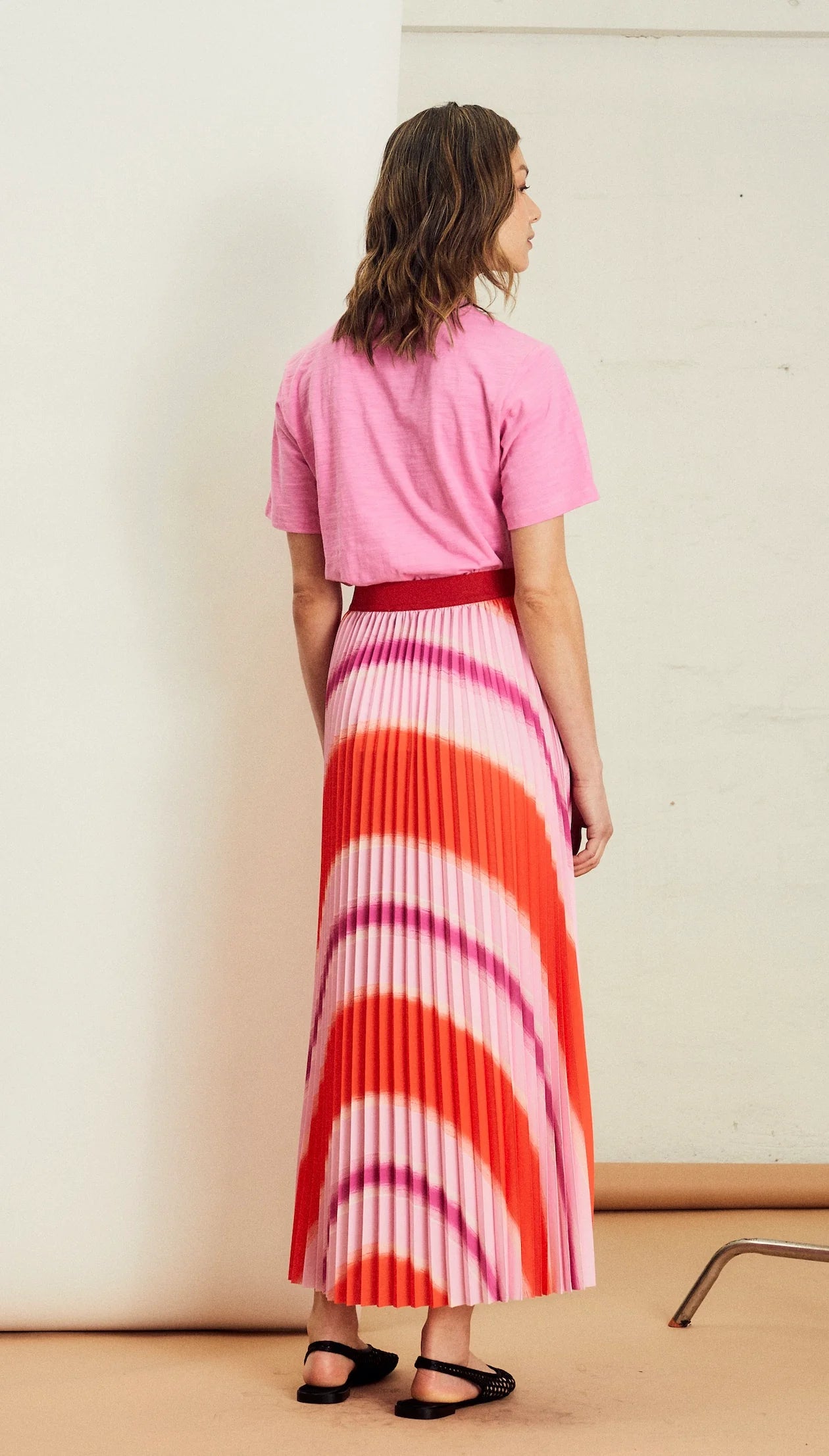 Make a statement with the Simone Maxi Pleated Skirt in Pink Sunset. Its flowing pleats and vibrant hue will have all eyes on you