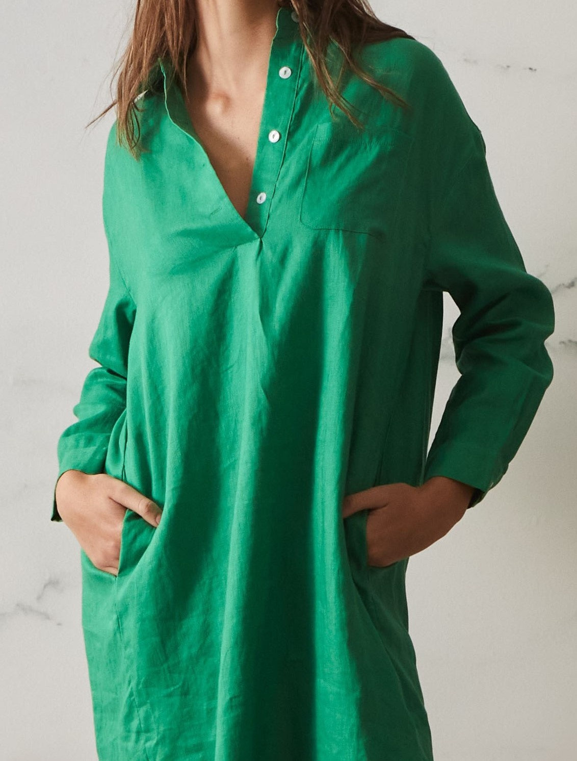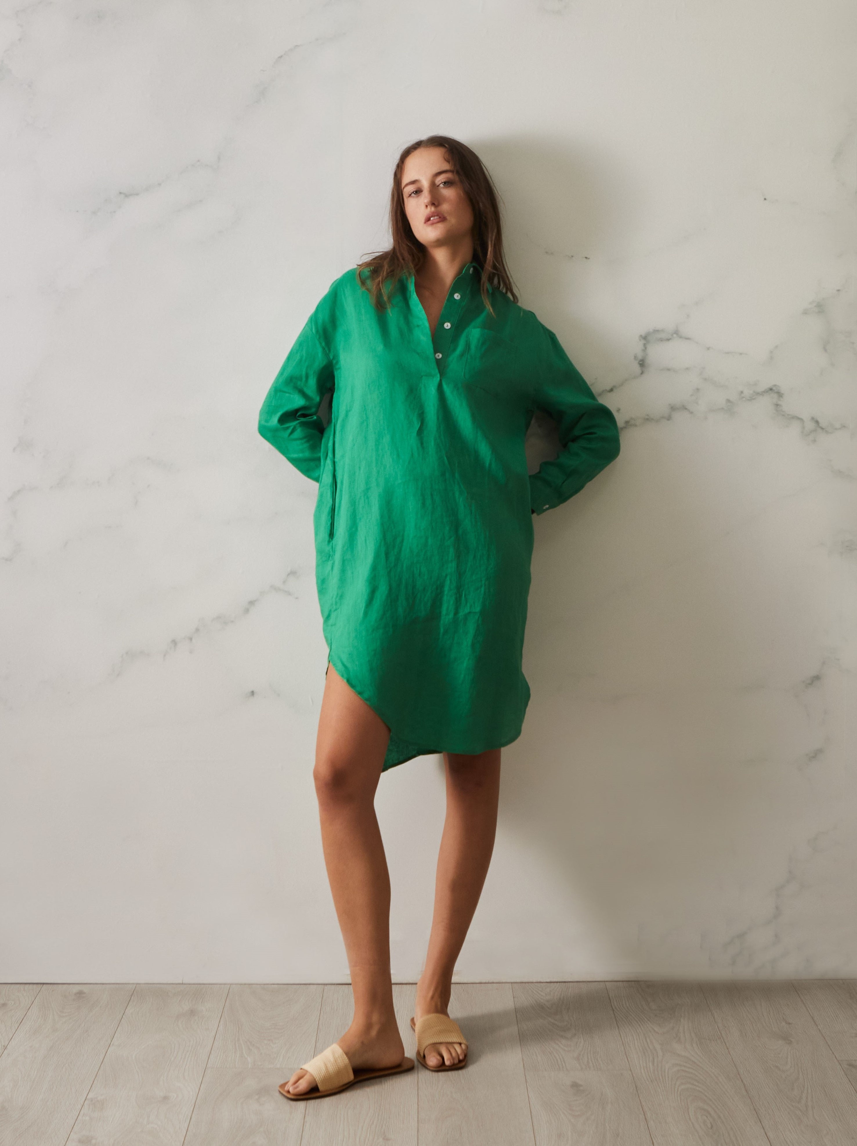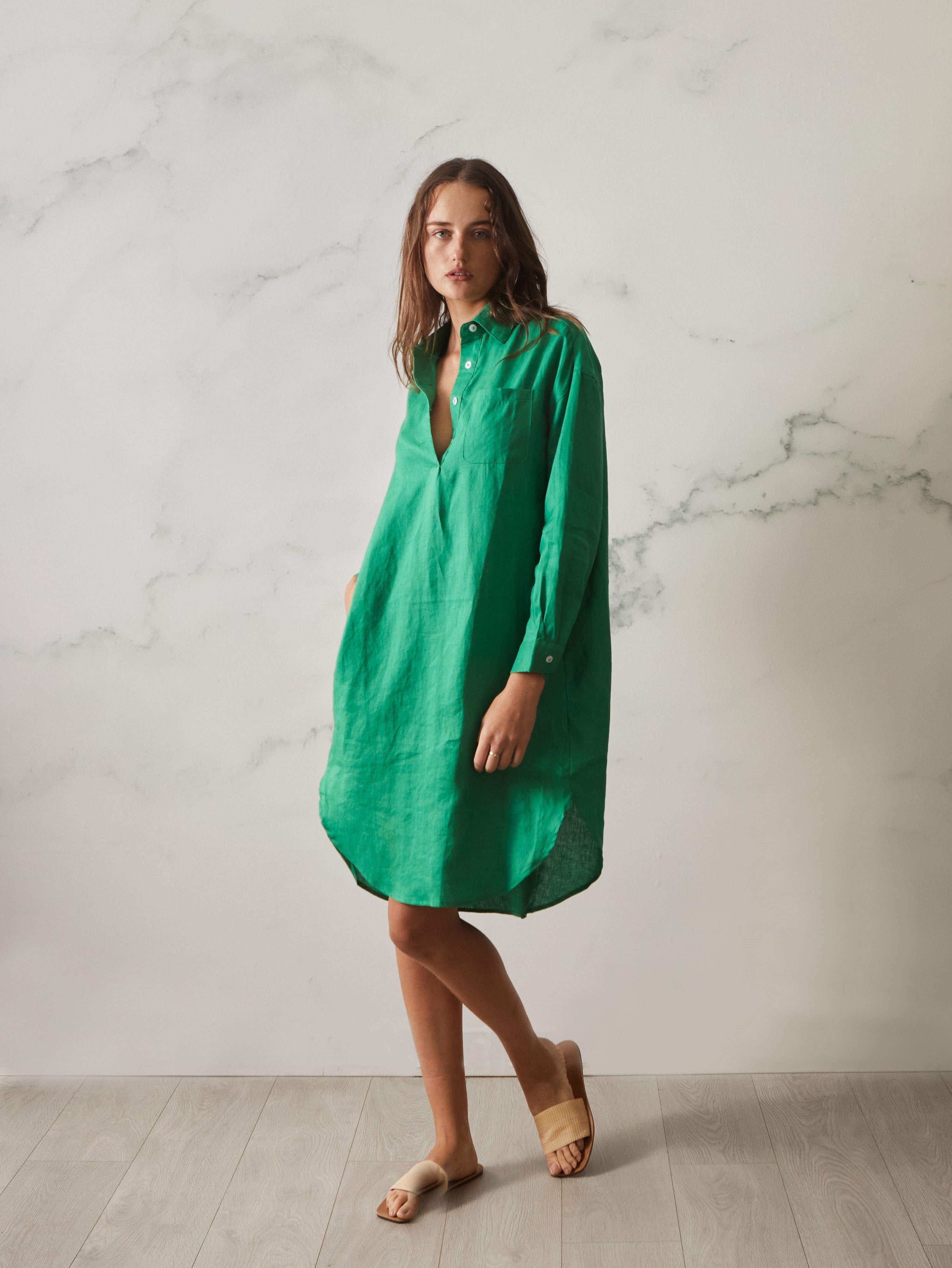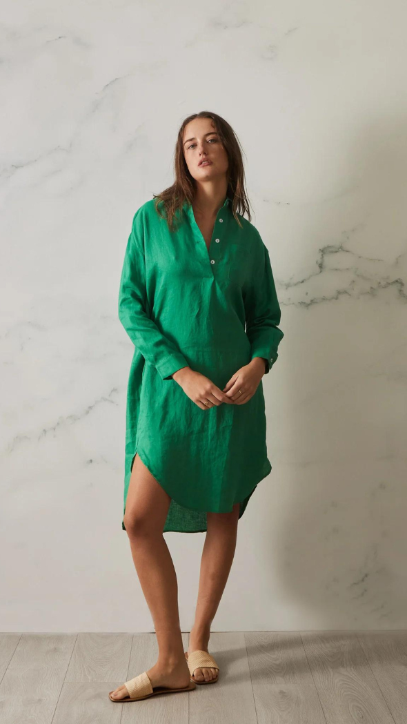 Are you the kind of fashionista that wants to stand out and make a statement, even while wearing something simple? Then the Claire Dress is perfect for you! This shirt style linen dress is an eye-catching classic that will never go out of style. Its easy wear, oversized and generous fit means it's perfect for any season and offers an effortless, chic look for any wardrobe capsule.