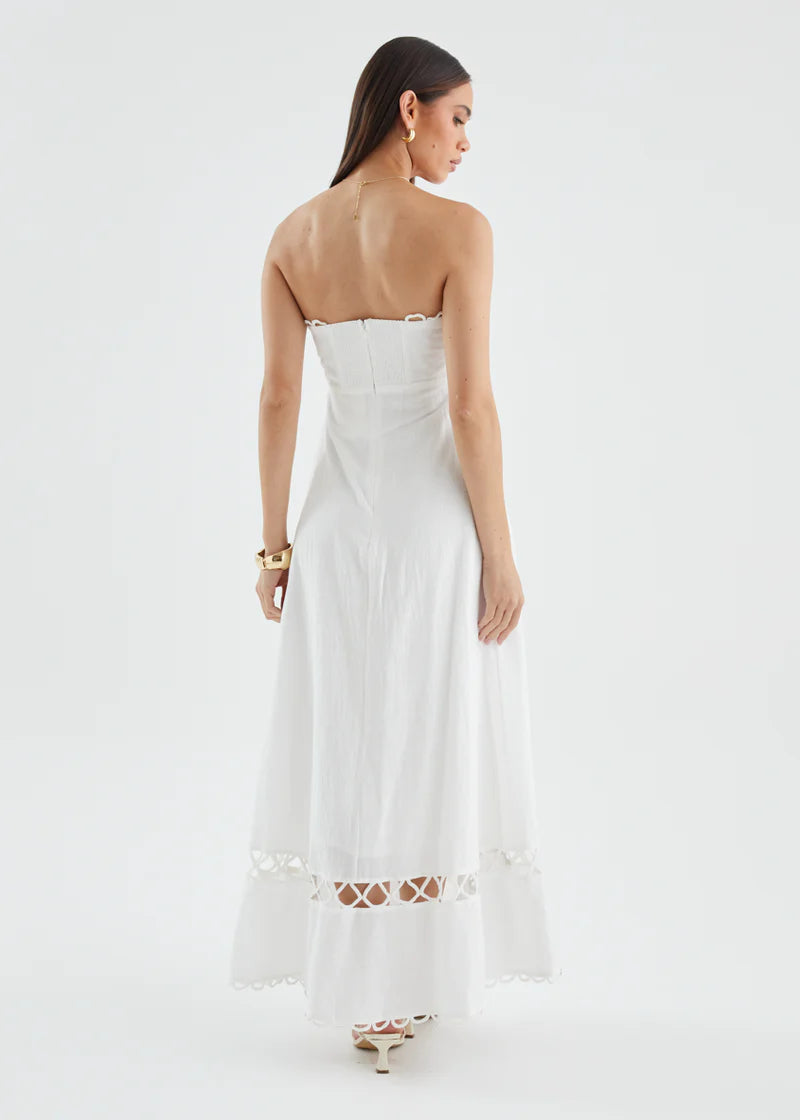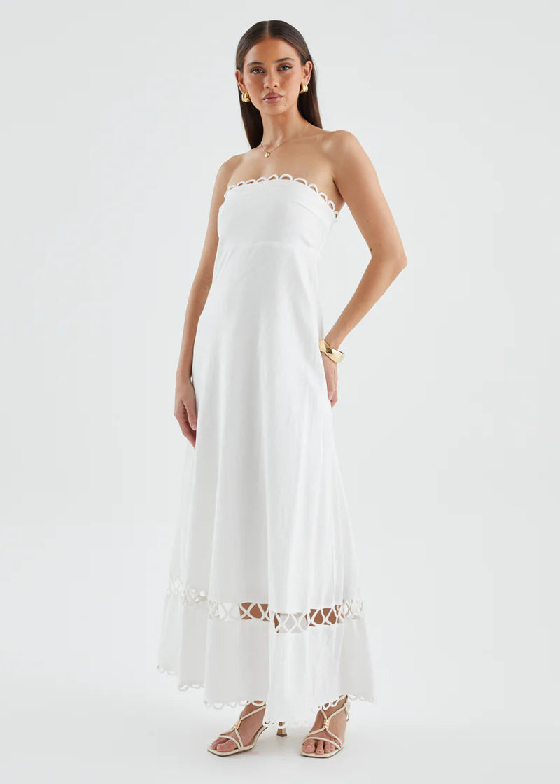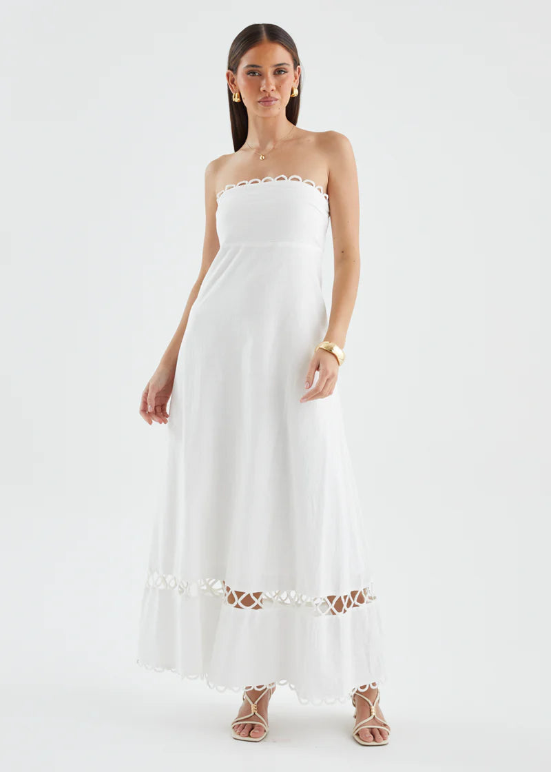The Martini Dress is the epitome of sun-drenched sophistication. With its sleek strapless silhouette, breezy cotton feel, and bold cut-out scallop trim, it’s designed to make a statement—whether you’re poolside in Positano or dancing barefoot at golden hour. Available in crisp white, fiery red, and classic black, Martini is your go-to for warm nights, cool drinks, and unforgettable entrances.