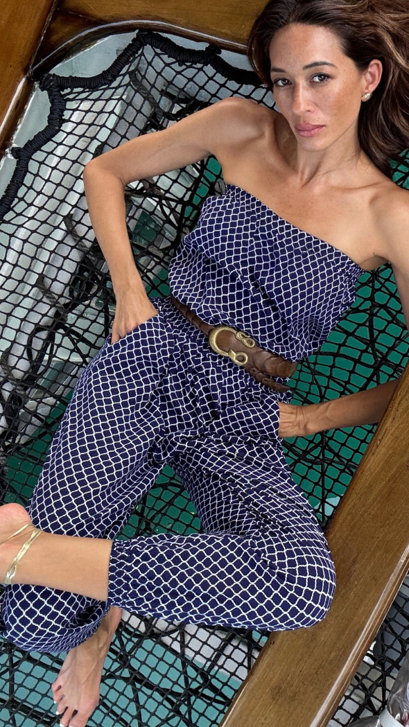 Sun-warmed days and sea-sprayed evenings call for something as easy as it is beautiful — enter the Rima Jumpsuit. Crafted in airy cotton and finished in an eye-catching print, she slips on without fuss and stays comfy all day, thanks to a stretchy smocked waist and strapless neckline that flatters without trying. Whether you're sailing into golden hour or lounging with a cocktail in hand, Rima brings the vibe.