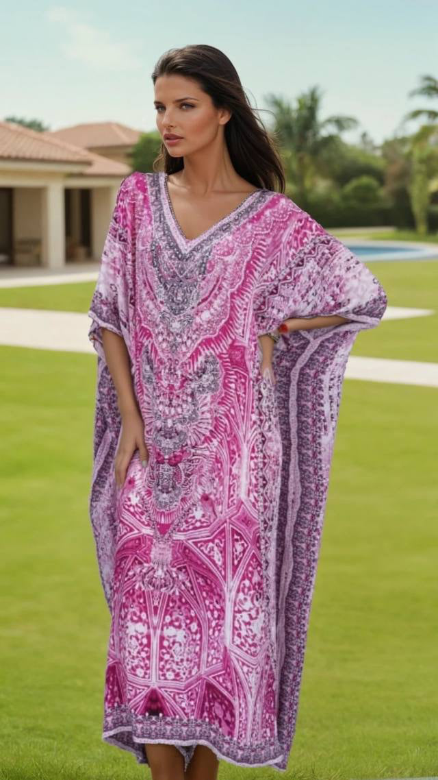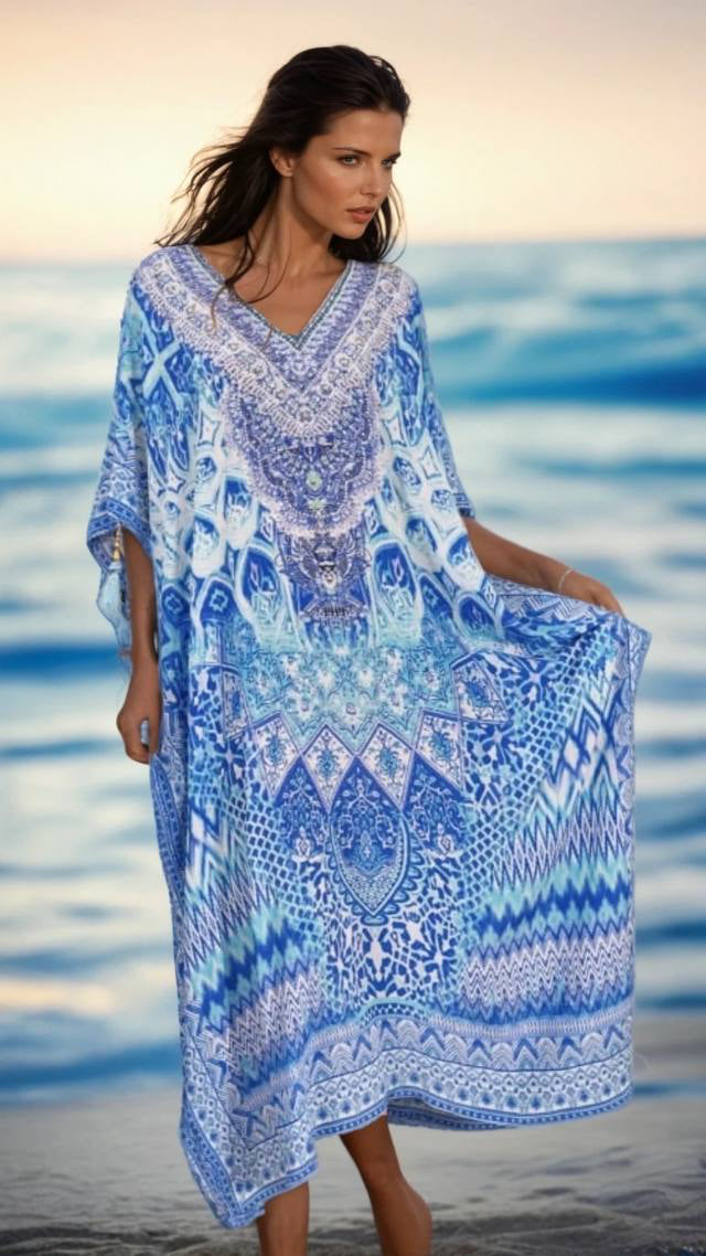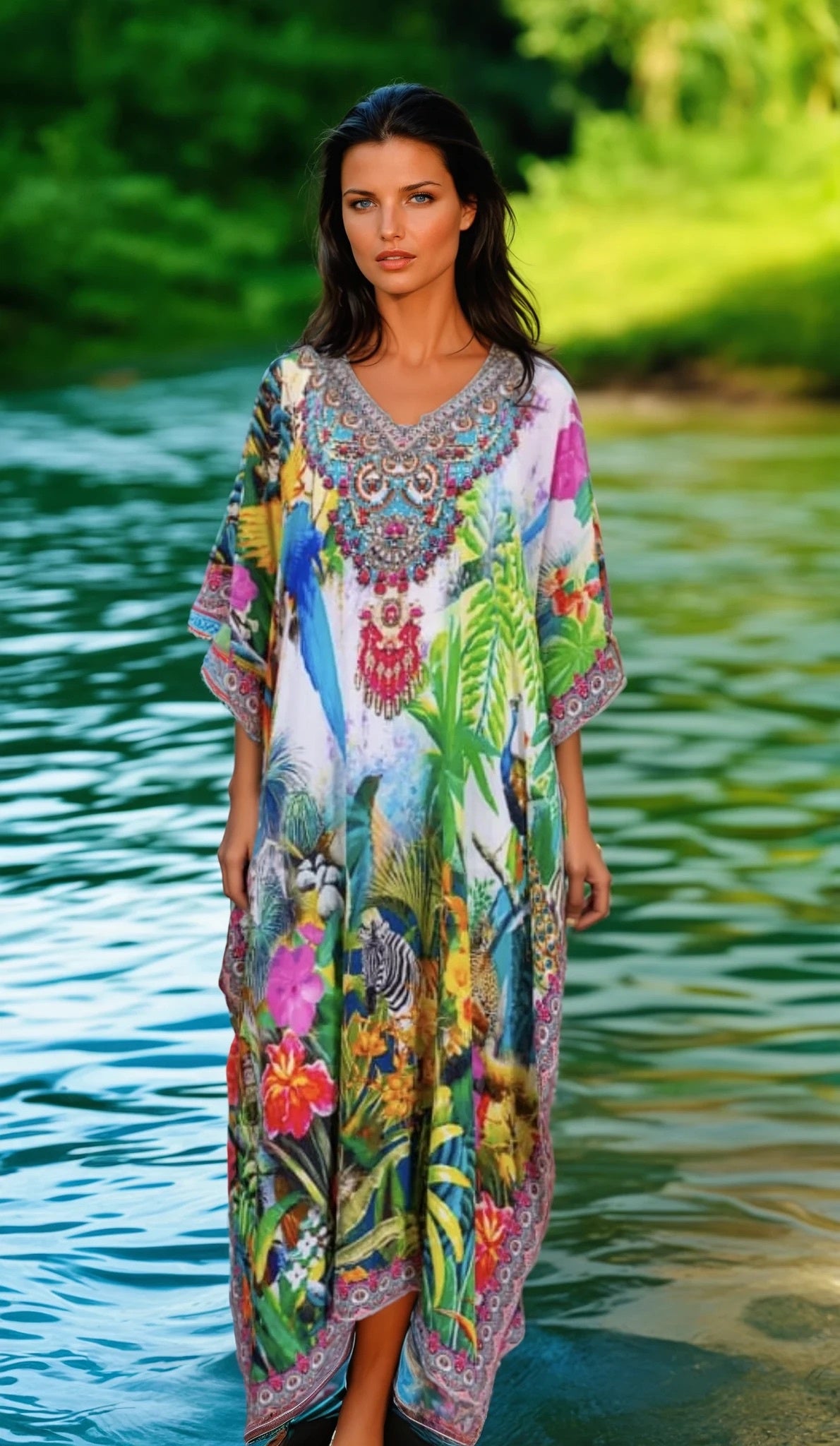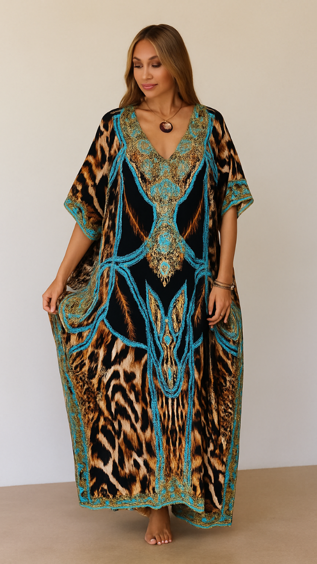 Discover our curated kaftan collection, where luxurious fabrics meet bold, distinctive patterns and color palettes—perfectly inspired by resort living and modern tropical aesthetics. These pieces are crafted for comfort and style, making them versatile wardrobe heroes—from beachside lounging to city-striding glamour.