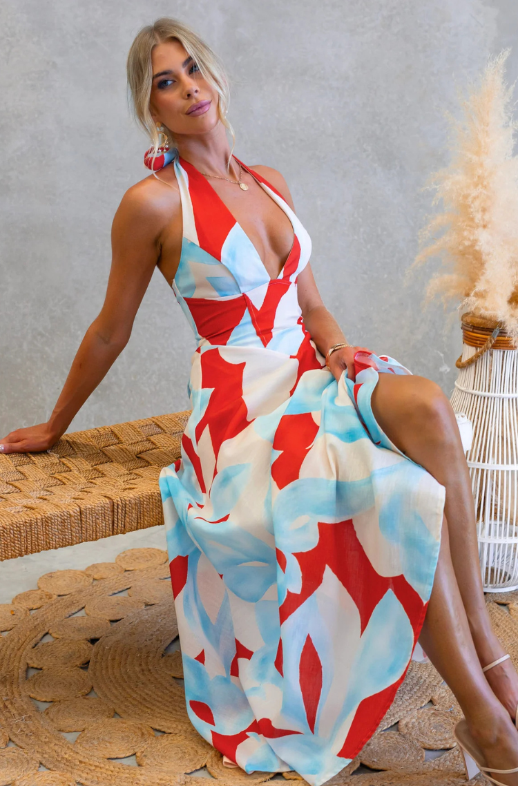 The Gia Dress is made for moments that feel a little more special — flowing with every step and catching the eye with its bold, artistic print. It’s confident, feminine, and perfect for warm days that turn into unforgettable evenings.