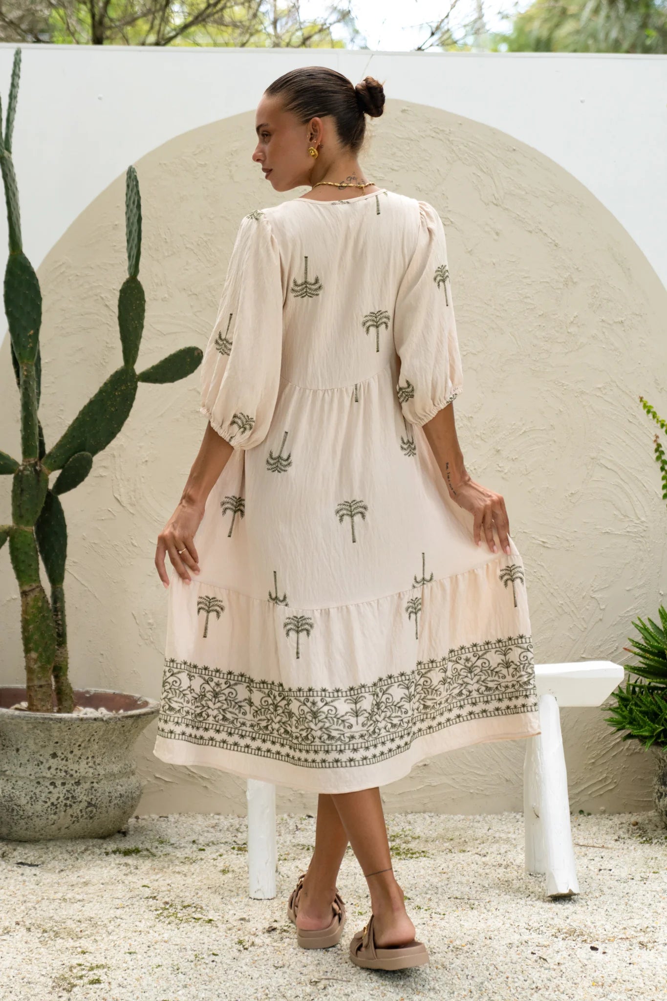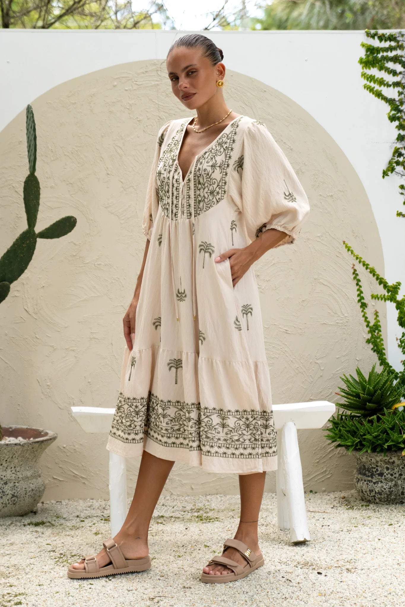 The Hattie Dress is a love letter to slow, sunlit days — where every embroidered detail whispers stories of faraway places and barefoot wanderings. With its soft volume, artisan charm, and floaty ease, she’s made to move gently through golden hours and everything in between.