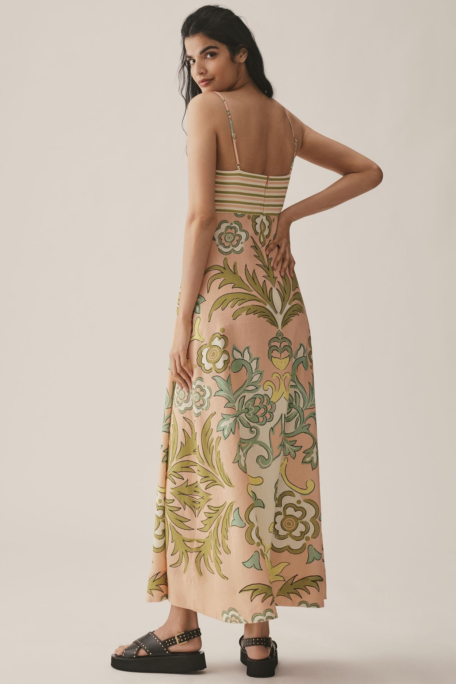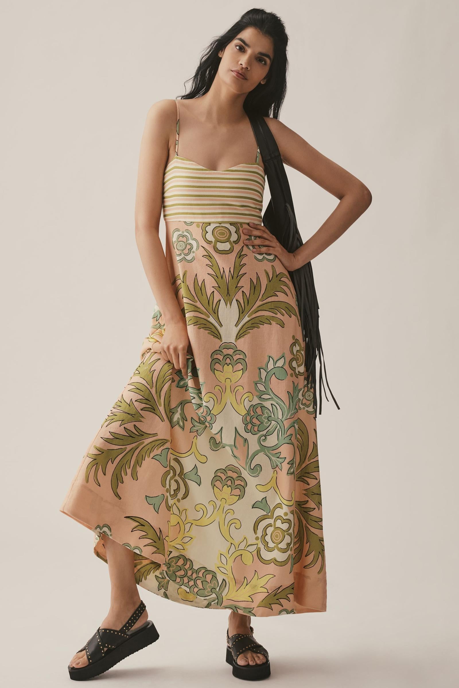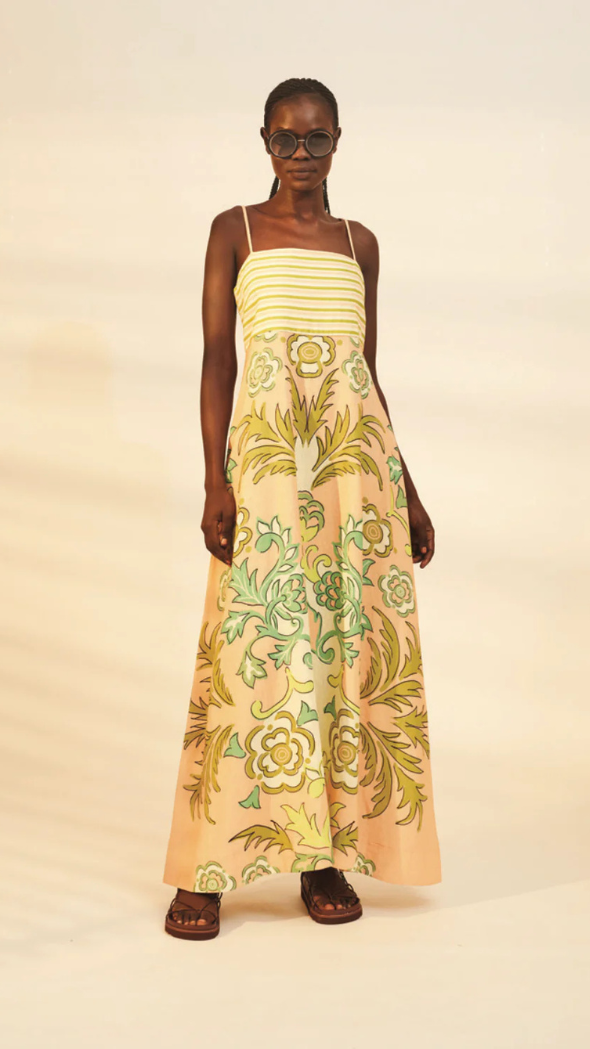 Romantic, effortless, and endlessly chic—the Lucia Maxi Dress is made for sun-drenched days and moonlit nights. With its delicate stripe and vintage floral print combo, this flowing silhouette brings a dreamy, bohemian elegance to any occasion.