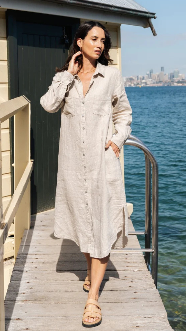 Our classic linen shirt dress will become your summer essential. Team it with a heeled boot, a summer sneaker or a sandal, this beautiful piece suits most shapes and sizes and will take you from daytime casual to nighttime cocktails, no problems. Most importantly, it's comfortable! With pockets, tabs to hold rolled up sleeves and a flattering neckline, our linen shirt dress is classic and versatile.