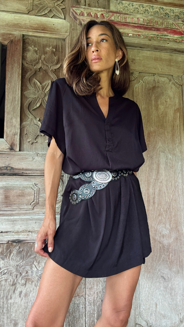 Our Hudson Dress by Kenz & Kate is a timeless staple featuring a flattering V-neckline and short sleeves. Crafted from lightweight rayon, it offers a comfortable, loose fit that’s perfect for any occasion. Style it with a belt for a cinched look or wear it effortlessly loose for a relaxed vibe. Your go-to dress for both casual and elevated moments!