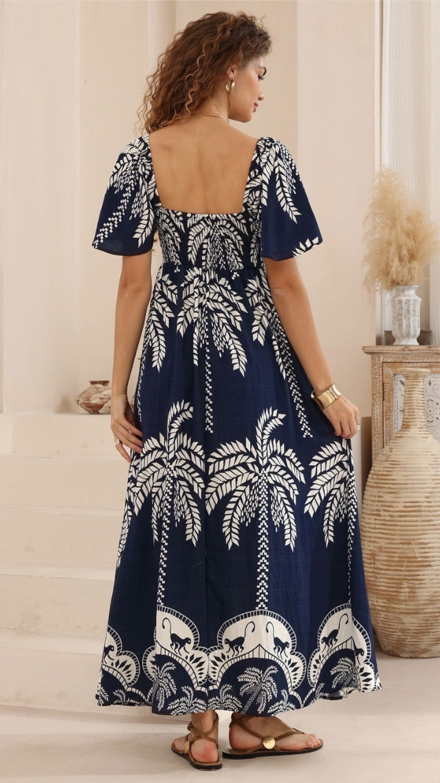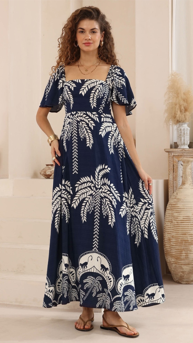 The Larissa Dress is a timeless style that flatters from every angle. Designed with a softly structured square neckline, flutter sleeves, and a full flowing skirt, it combines ease and femininity in perfect balance. Whether styled for a summer occasion, a resort getaway, or everyday chic, the Larissa offers comfort, grace, and effortless sophistication.