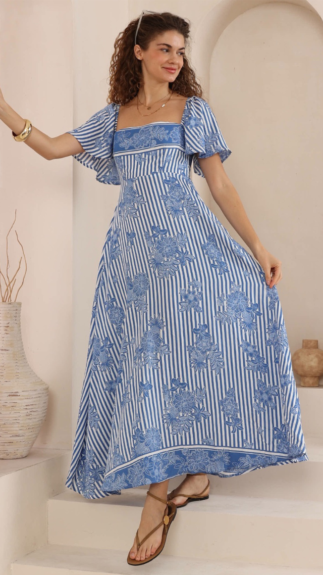 The Larissa Dress is a timeless style that flatters from every angle. Designed with a softly structured square neckline, flutter sleeves, and a full flowing skirt, it combines ease and femininity in perfect balance. Whether styled for a summer occasion, a resort getaway, or everyday chic, the Larissa offers comfort, grace, and effortless sophistication.