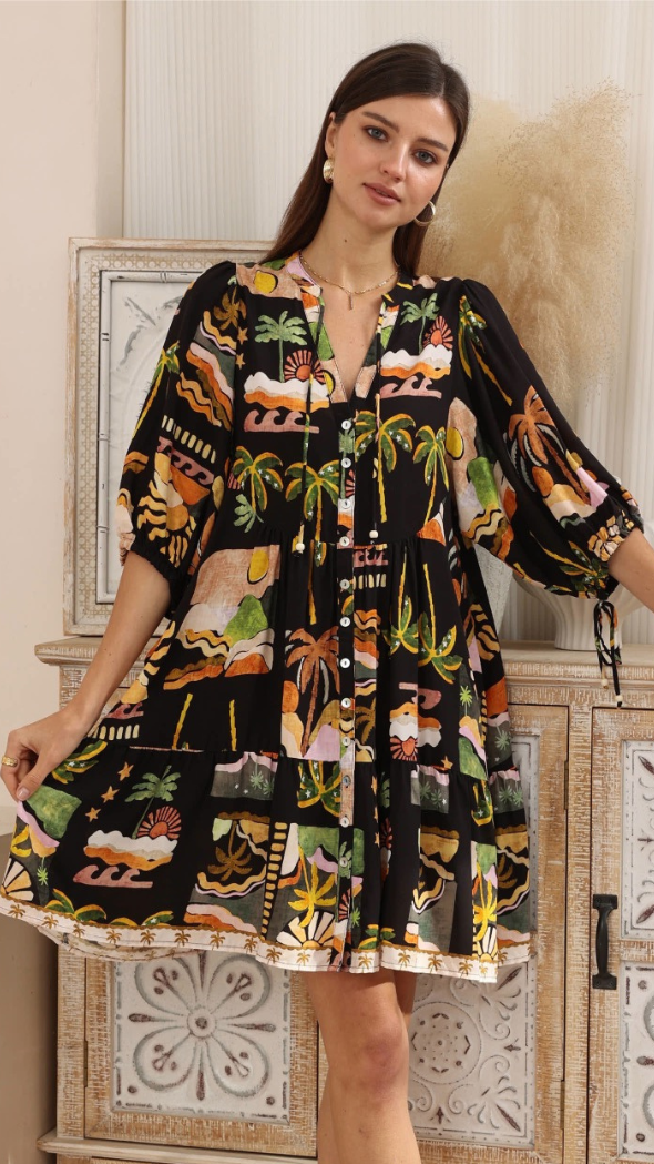 The Melody Dress is sunshine in clothing form. With its breezy silhouette and playful details, it’s made for slow mornings, warm afternoons, and spontaneous adventures. A go-to for everyday ease and feel-good moments, this throw-on-and-go favourite is flattering, feminine, and always fun—no matter the print you choose.