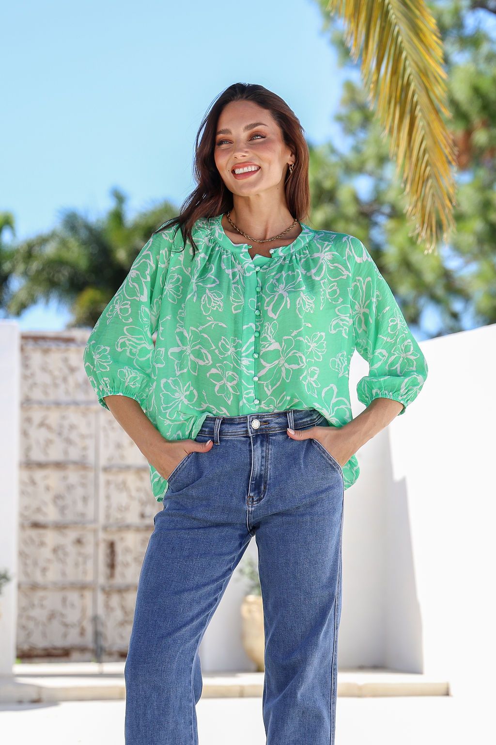 Light, airy, and effortlessly chic — the Batam Shirt is your go-to for balmy days and breezy nights. Crafted in a sheer, flowy fabric with a delicate floral print, it’s the kind of shirt that makes casual dressing feel instantly elevated. The relaxed silhouette drapes beautifully, while the button-up front and soft neckline keep it versatile — wear it loose over denim, tucked into a skirt, or layered as a beachside cover-up. Available in two dreamy hues — fresh green and romantic pink — Batam is made for women who love style that feels as good as it looks.