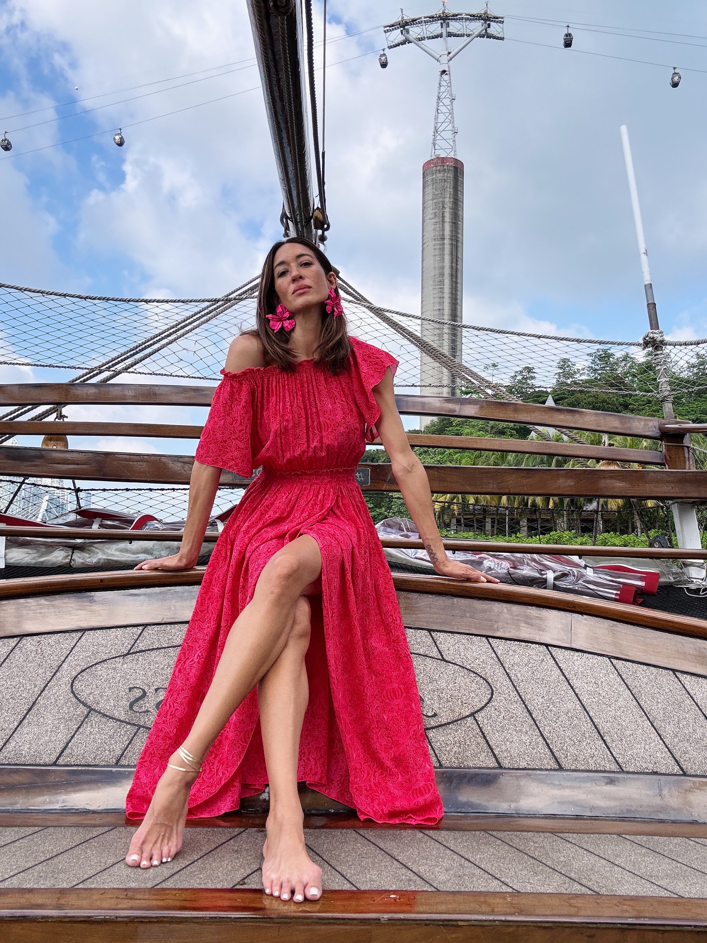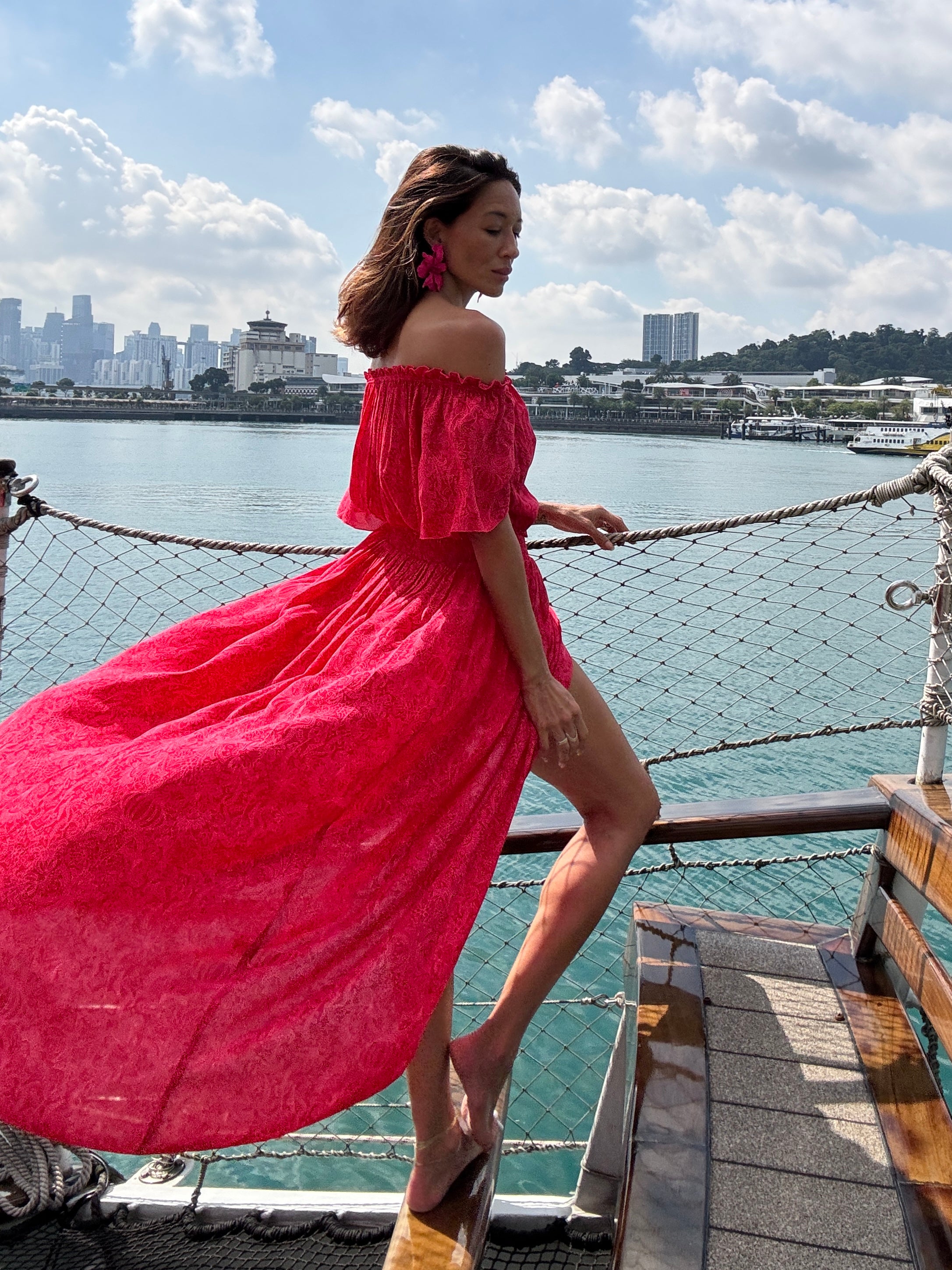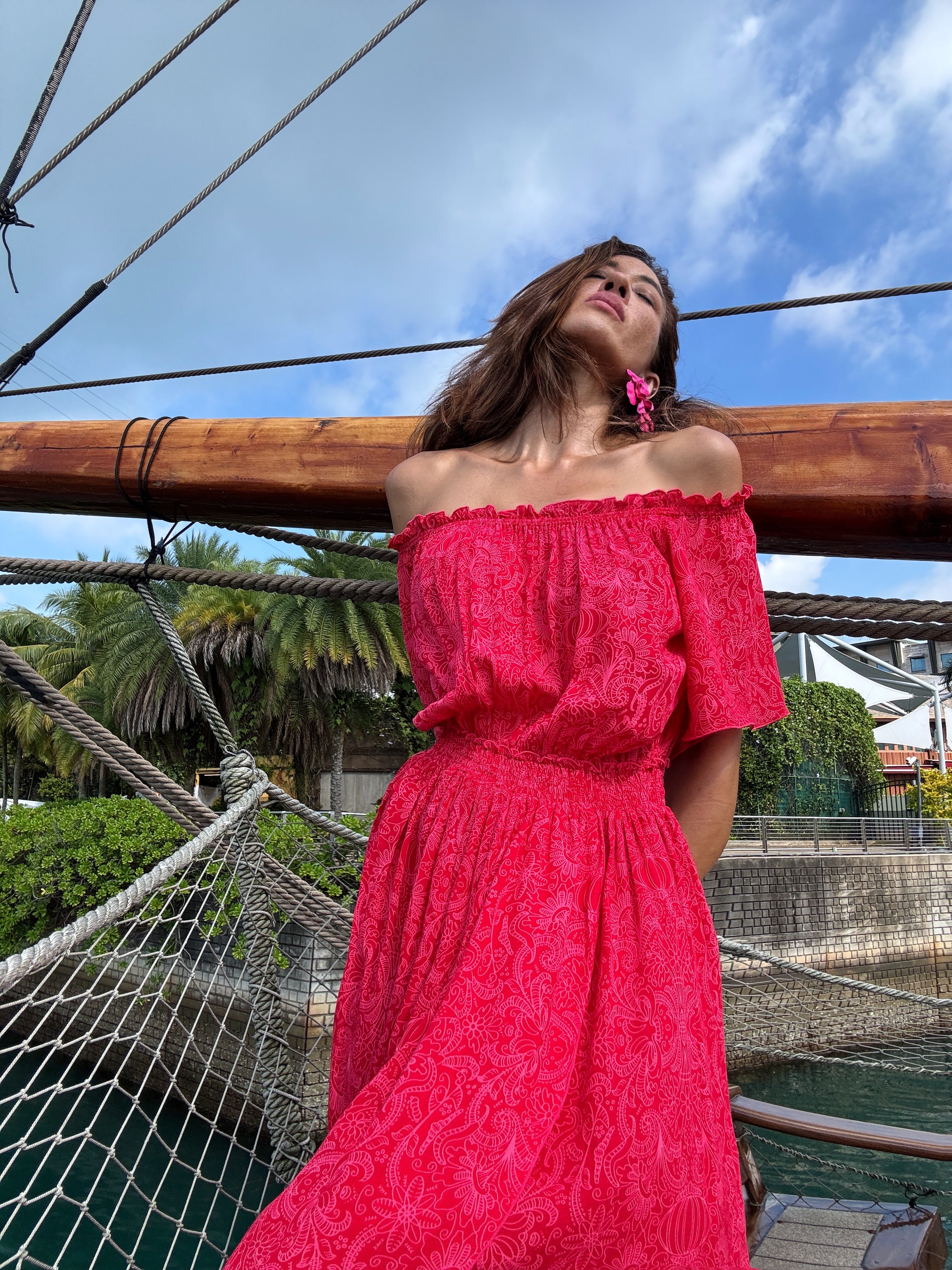 The Aliyah Dress is pure summer energy — flirty, free, and full of movement. With her off-shoulder neckline and breezy, leg-baring silhouette, she was made for golden hours and spontaneous adventures. The smocked waist gives you that cinched-but-comfy fit, while the flowing skirt dances with every step (or twirl). Whether you're barefoot on the beach or dressed up for sunset cocktails, Aliyah brings the drama — in the most effortless way.