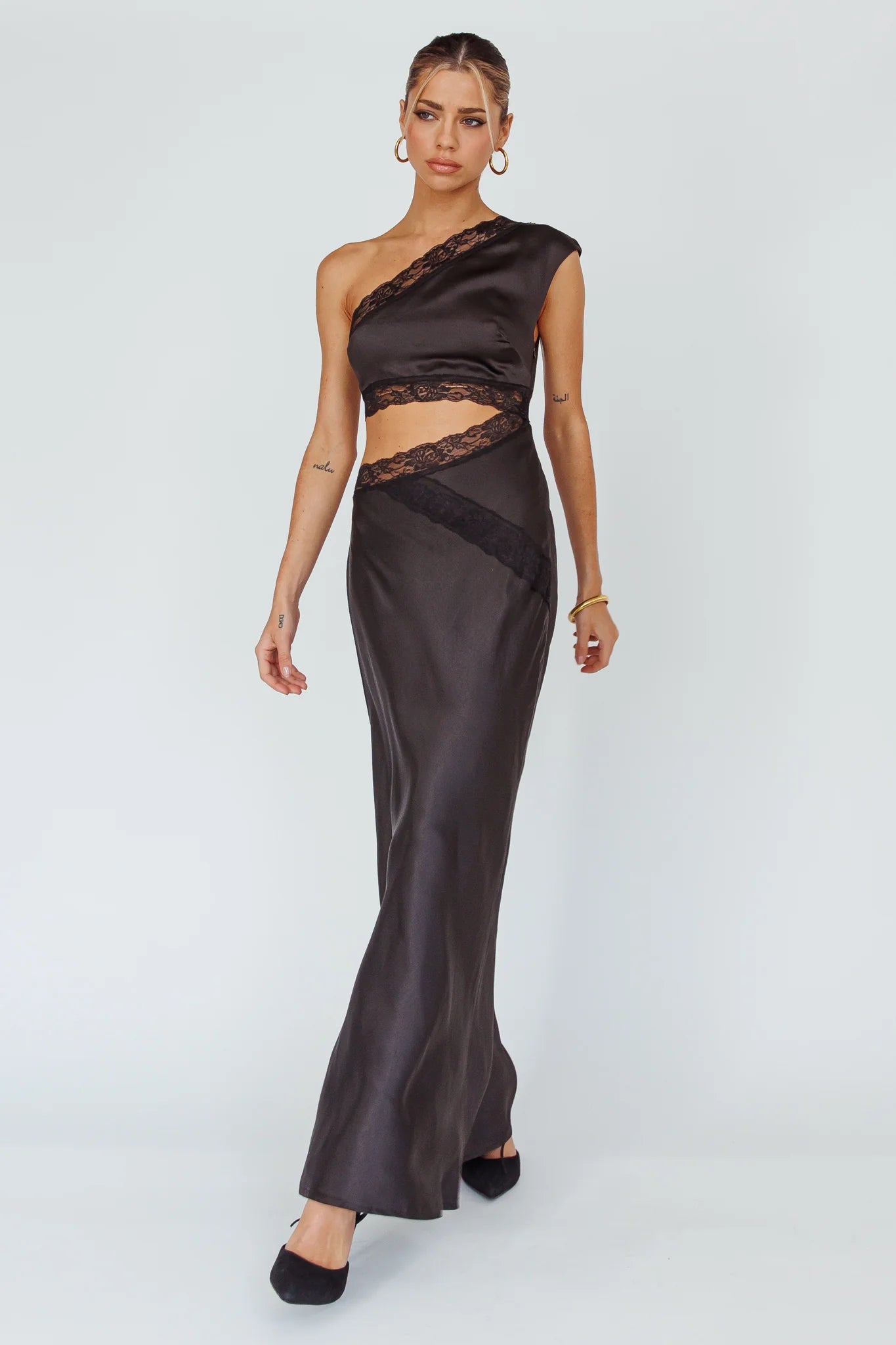 Make an entrance in our gorgeous Venus Dress. Featuring a pretty lace trim and one-shoulder style. It's perfect for a special event or birthday celebration. Team it with black heels and a purse and get ready to slay!