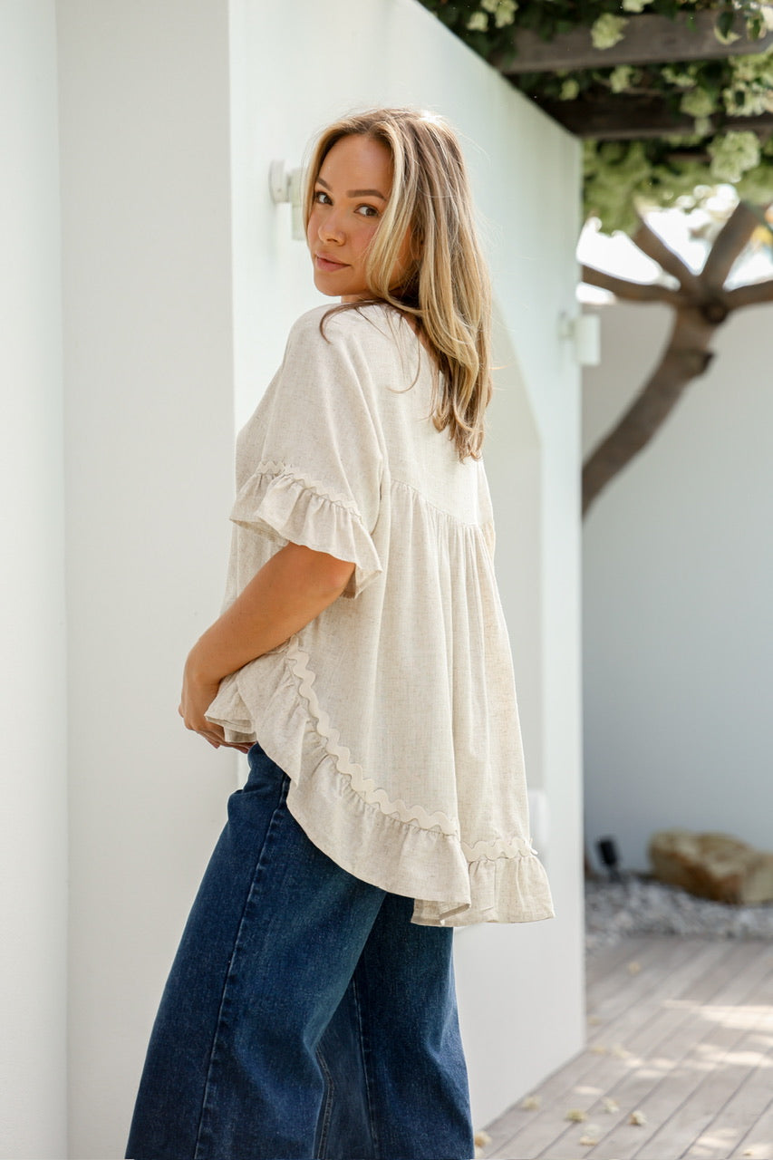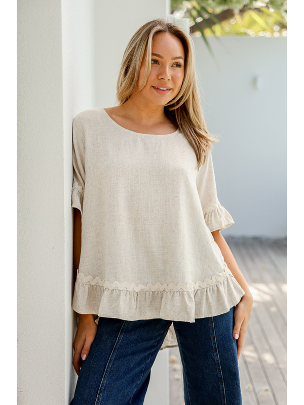 We love an easy throw on top that just looks great on. Our Lulu Top ticks all the right boxes as its ric rac details jazz it up in all the right places! We love the cute ruffle frill to the sleeves and ruffle high low hem. Its super comfy & just the right length to sit nicely over pants, jeans or shorts! You will love this top for summer.
