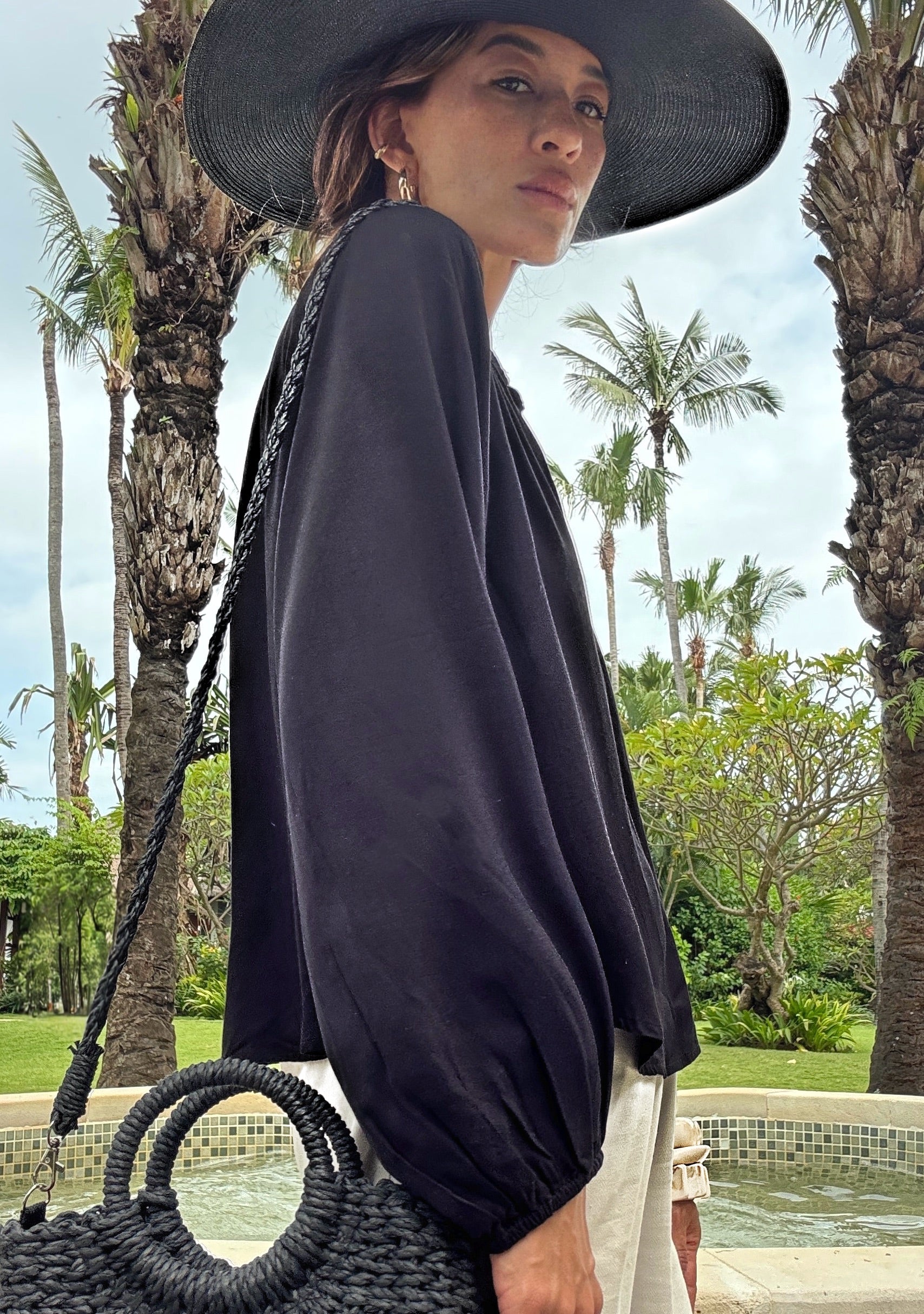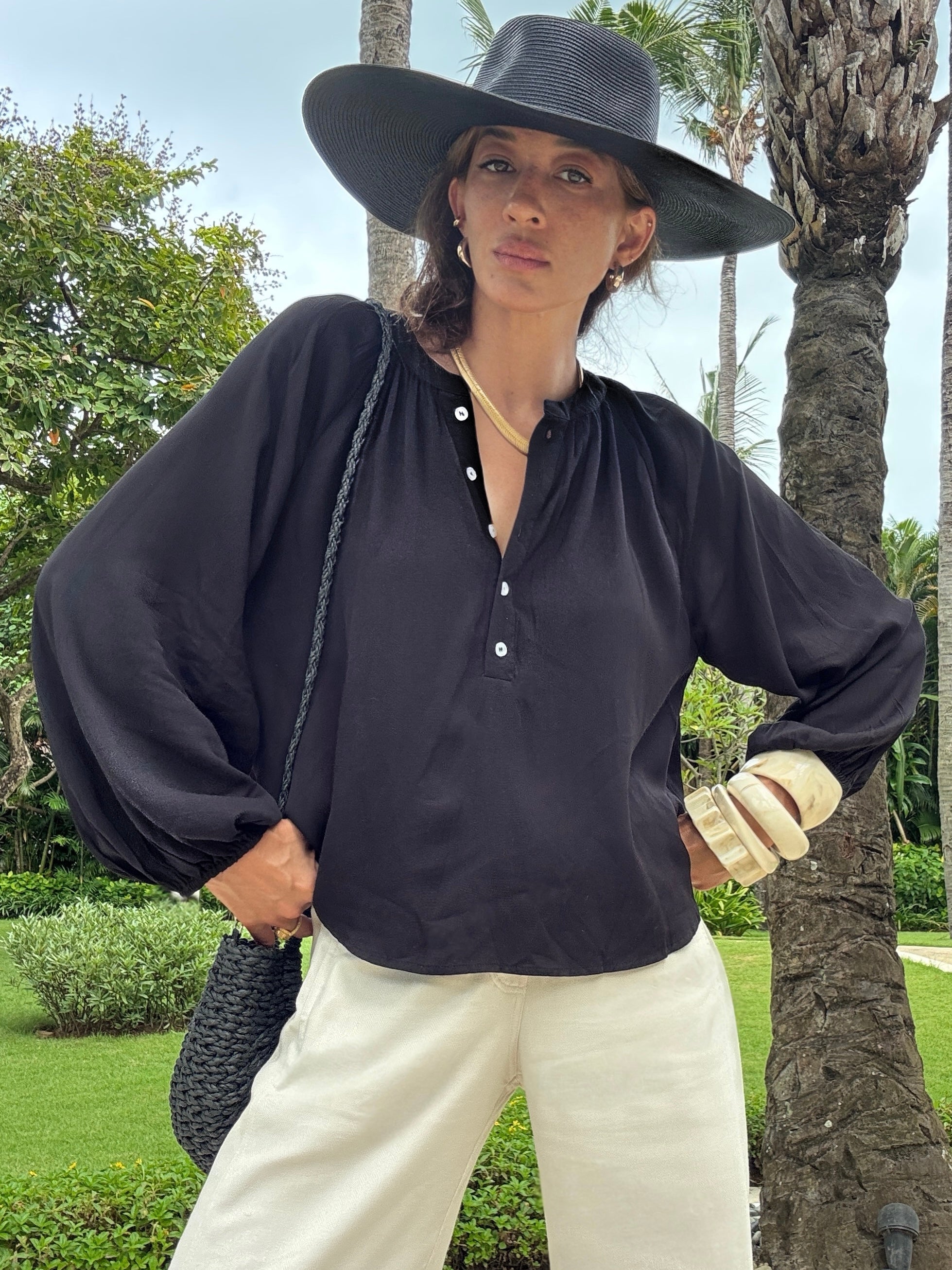 The Hemingway Top by Kenz & Kate is a timeless essential, crafted from soft, breathable rayon. Available in classic white and black, it features a button-front design and long sleeves with elastic cuffs that can be adjusted for a shorter look. Effortlessly versatile, it’s perfect for creating both casual and elevated styles.