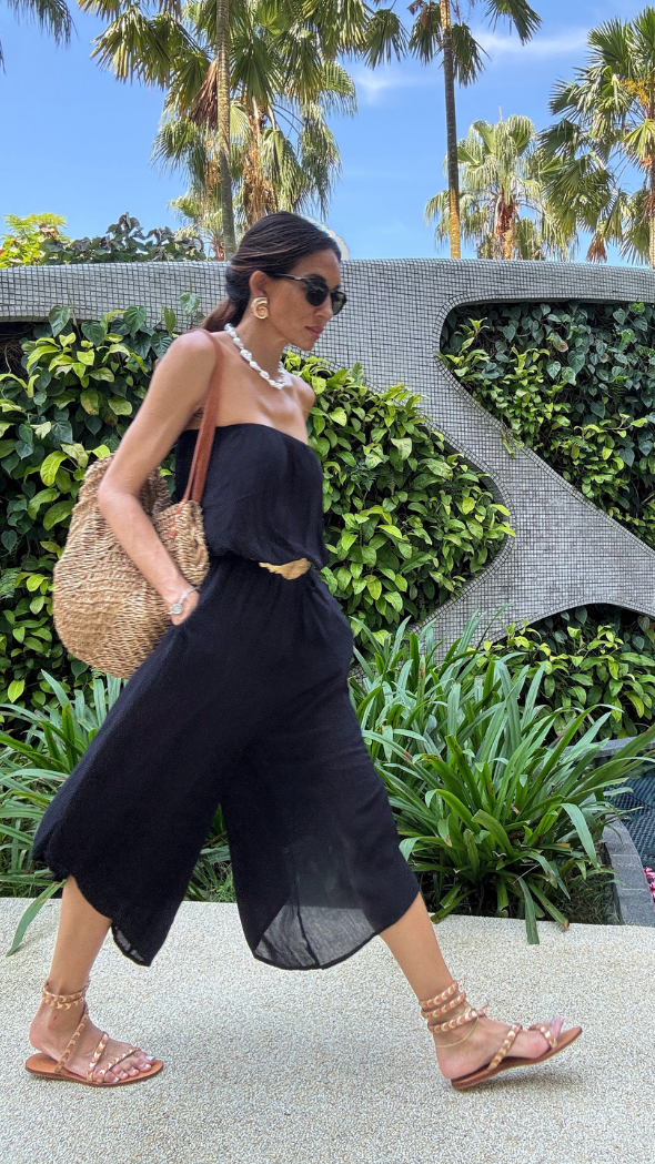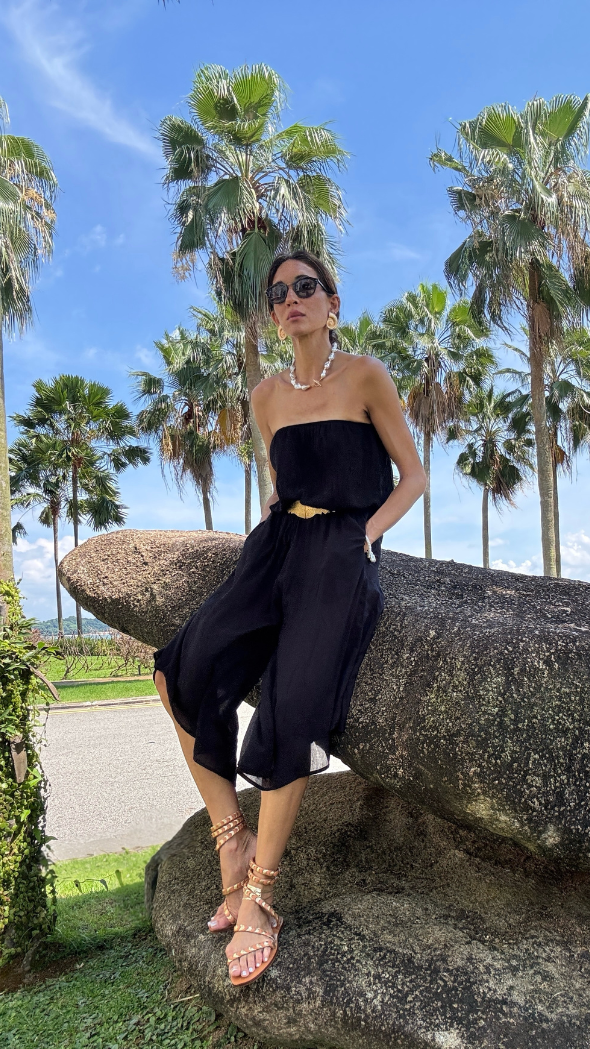 The Remo Jumpsuit is your go-to for understated elegance with a hint of island luxe. Designed in a timeless strapless cut, it skims the body in all the right places, while the wide-leg silhouette adds flow and ease. Whether you're styling it barefoot on the beach or elevating it with statement accessories for dinner under the stars, Remo is made to move with you – fluid, flattering, and full of quiet confidence.