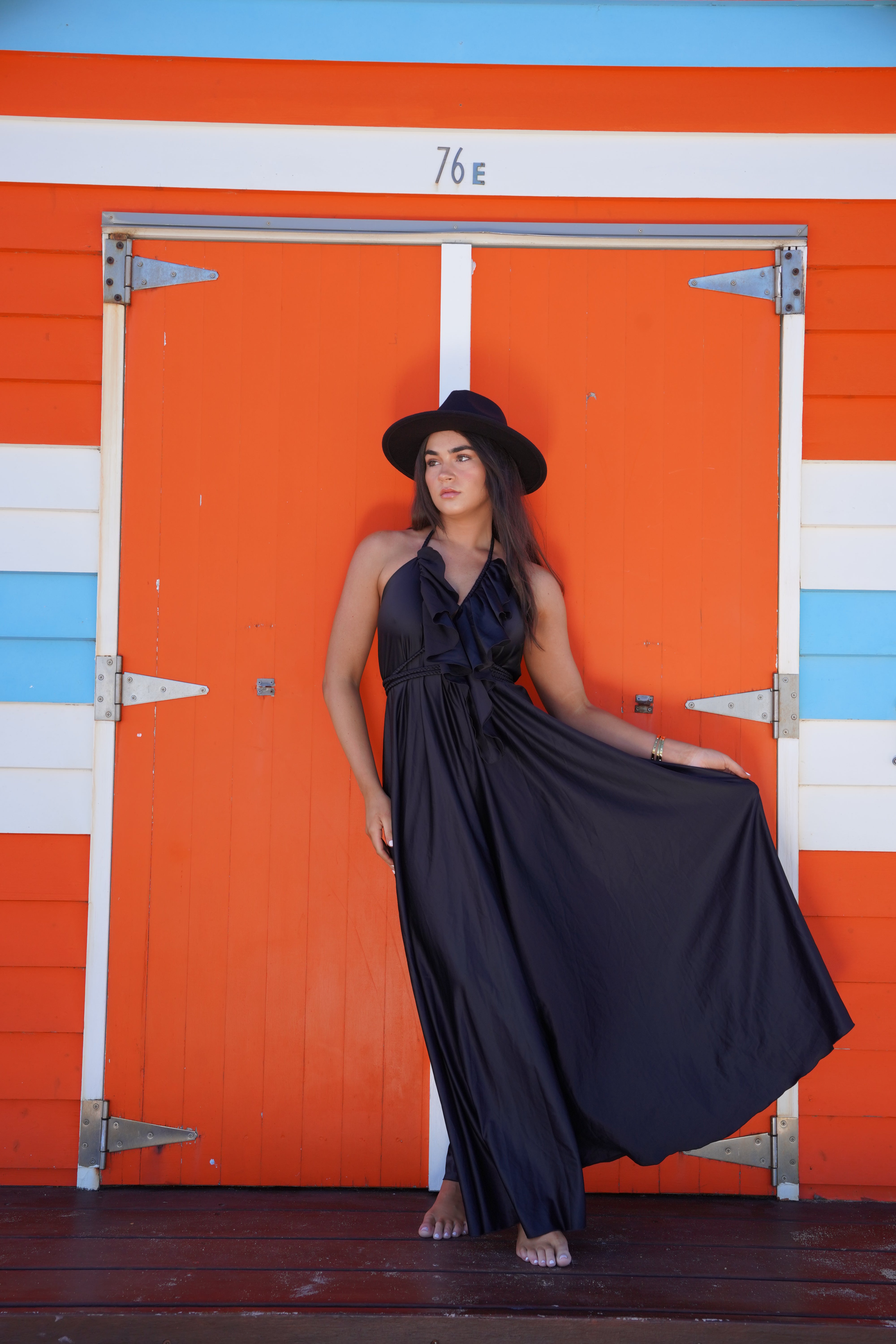 Our Kepang Dress is perfect for any occasion. With a halter style, ruffled v-neck, and low back, it's both elegant and versatile. The fit and flare design, along with the rope belt, accentuate your figure. Available in multiple colors, it's perfect for weddings, summer, and everything in between!