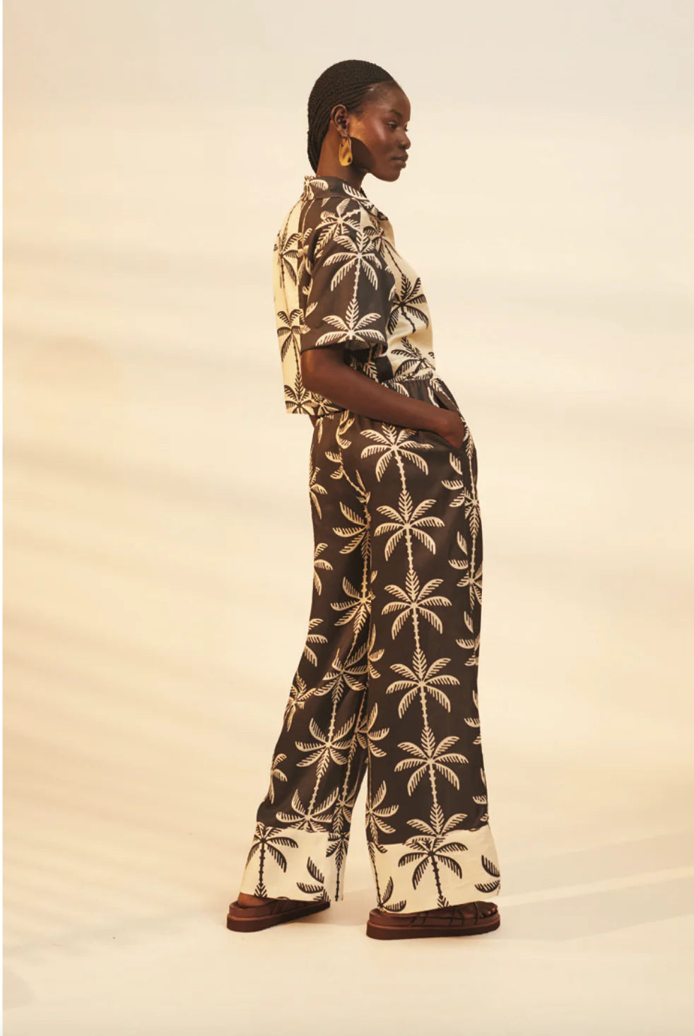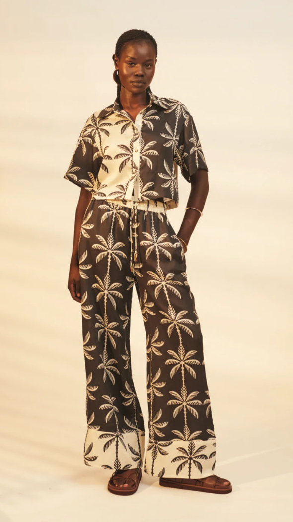 Step into effortless style with the Abena Pant in the striking Black White Tropical print. Designed for comfort and versatility, these high-waisted, wide-leg pants feature a relaxed fit and lightweight fabric that drapes beautifully. The bold monochrome print adds a modern edge, making them a statement piece for any wardrobe. Pair them with the matching Abena Short Sleeve Shirt for a coordinated, fashion-forward look, or style with a simple tank for an easy, everyday outfit. Dress them up with heels or keep it casual with sandals for a chic, versatile ensemble.
