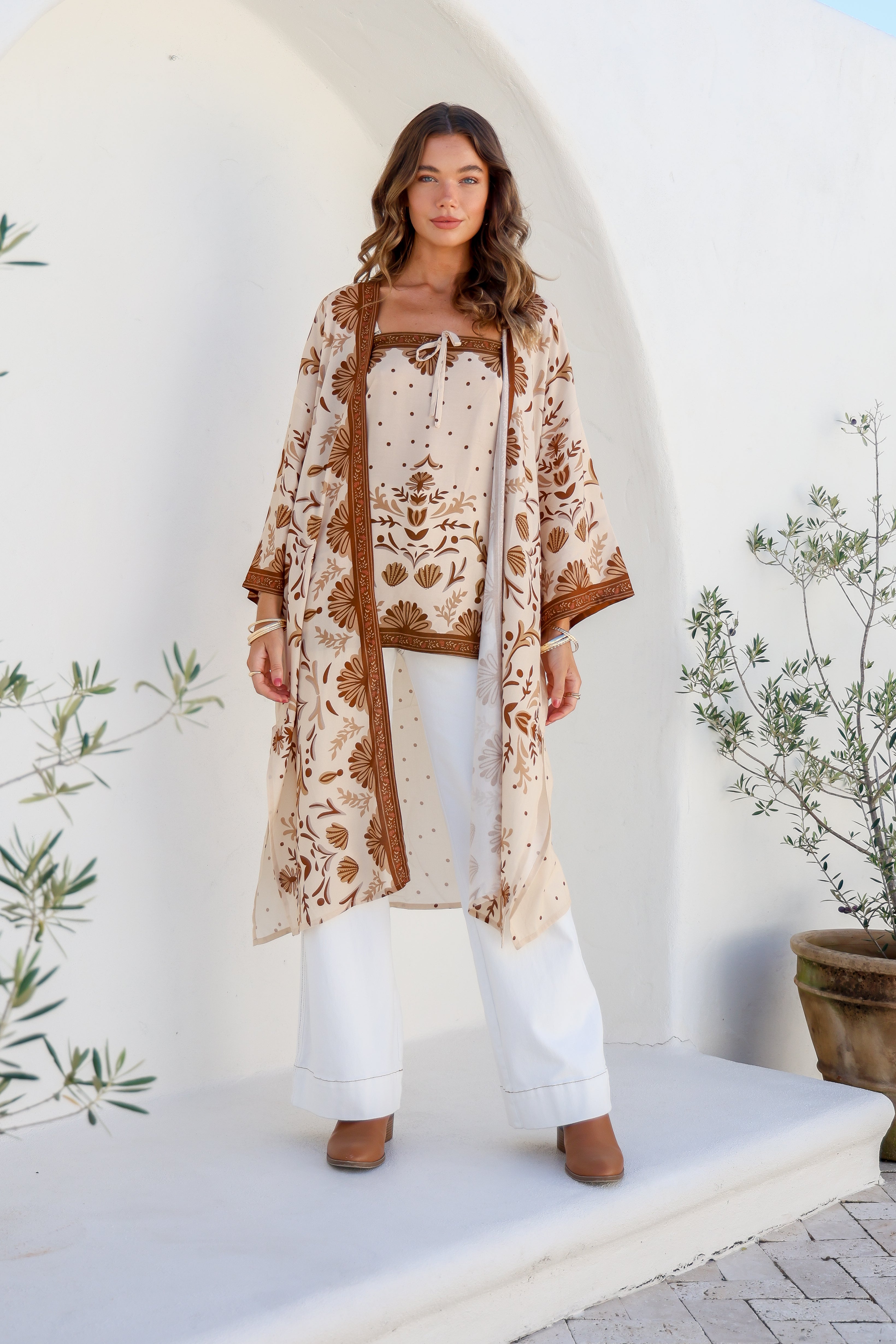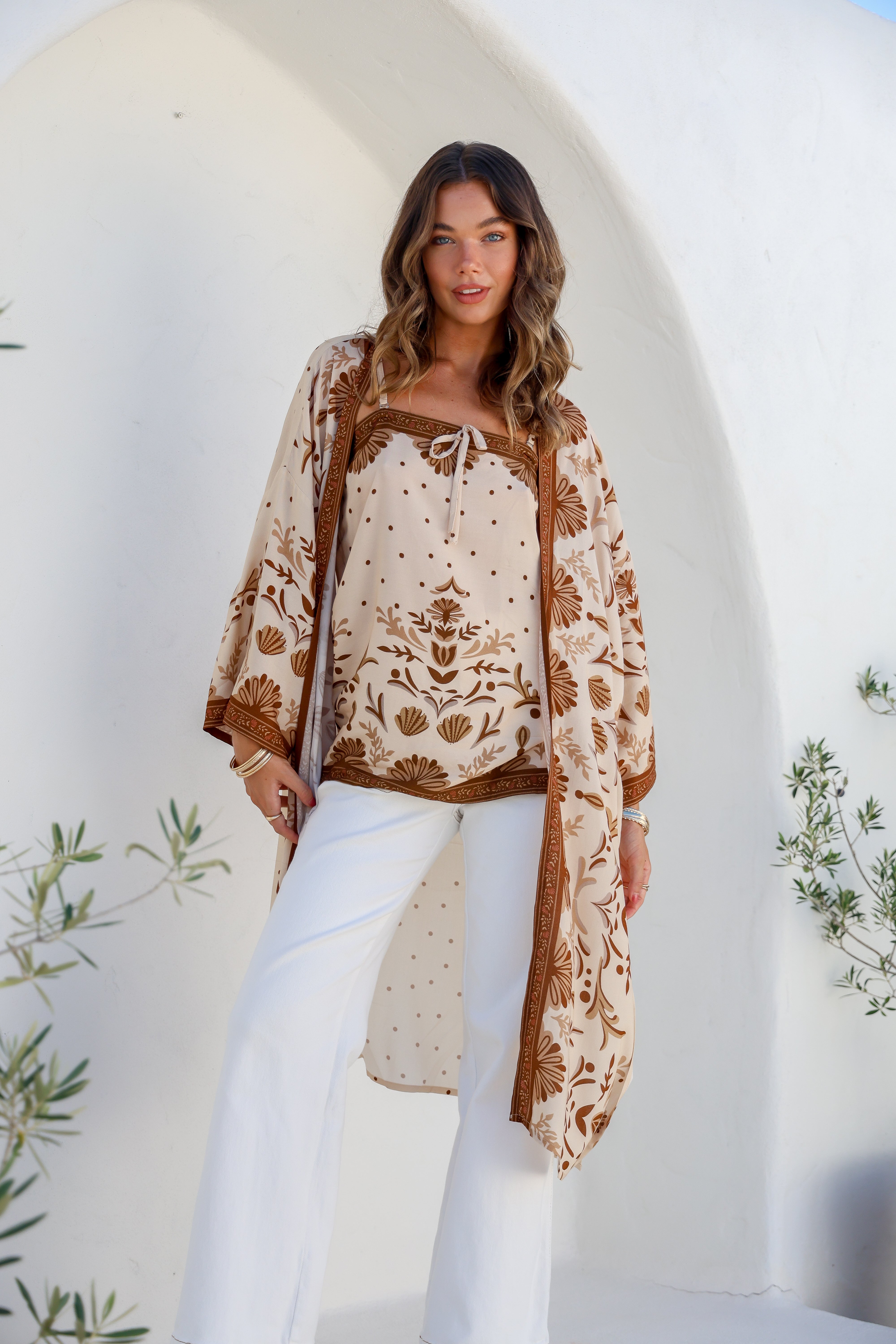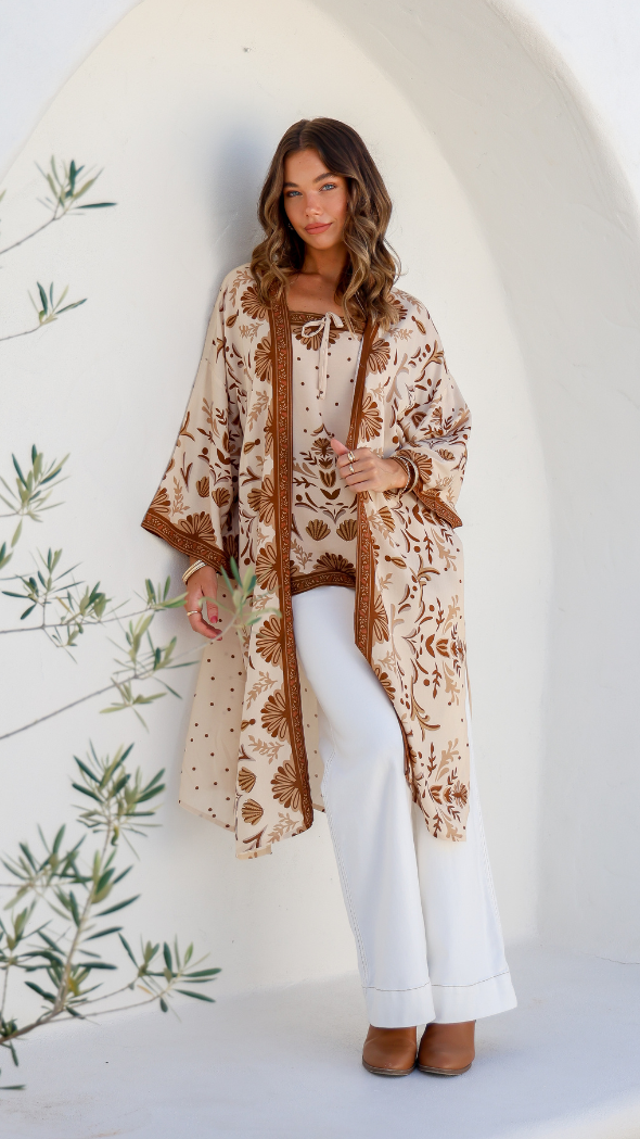 Our hearts skip a beat as we unveil the Barcelona Cape. This enchanting duster is an ideal addition to your autumn wardrobe, boasting statement sleeves and side slits that create elegant movement. Crafted from soft 100% rayon, the Barcelona Cape effortlessly elevates a classic jeans and tee combo with a touch of boho charm or adds a layer of sophistication over a white dress for those cooler days. Embrace the magic and versatility of this must-have piece.
