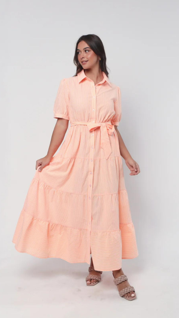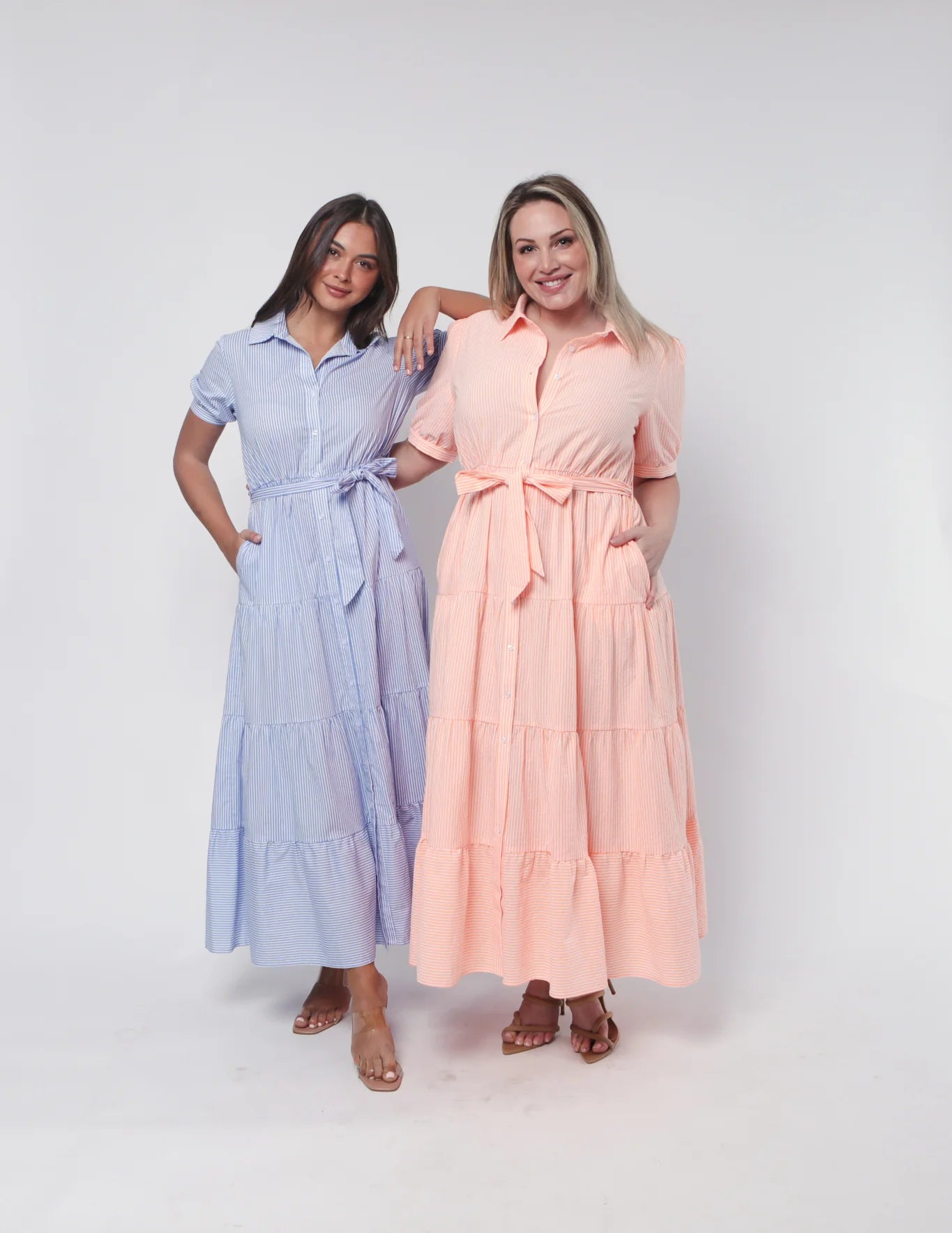 The Vista Dress is a masterpiece of femininity and romantic elegance! Pattern play meets everyday ease. Weighted for effortless seasonless dressing in our custom cotton poplin. A striped print and tiered skirt silhouette amplify the bohemian sensibility of this maxi dress. Its airy georgette fabrication is complemented by delicate shirring for ease of movement with each and every step. Elevate your style with this timeless and sophisticated essential.